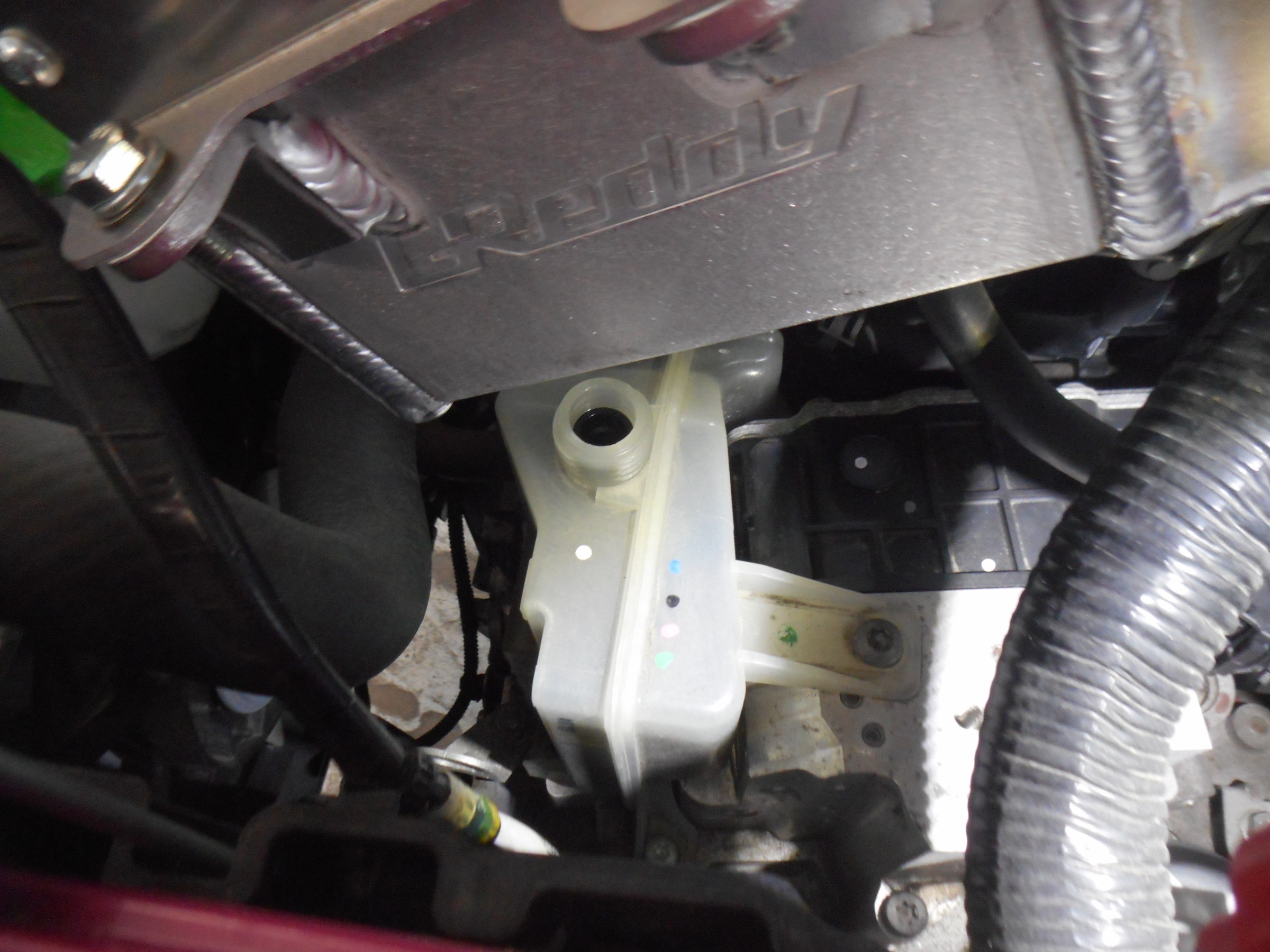 上のタンクから作動油を抜きます!作動油はモティーズを使用しました!
