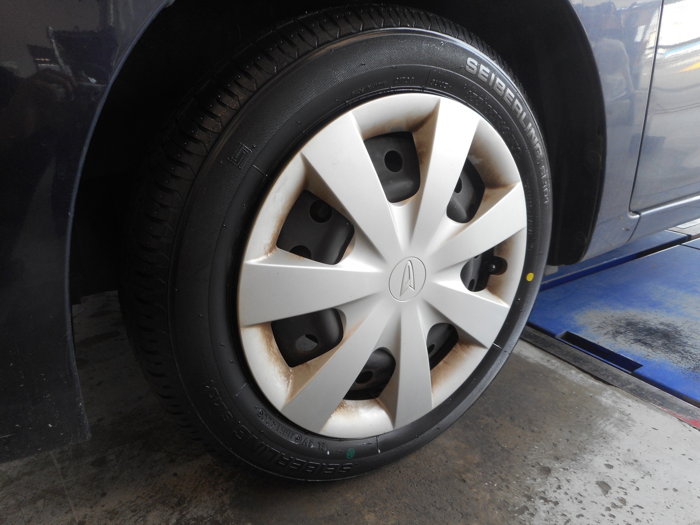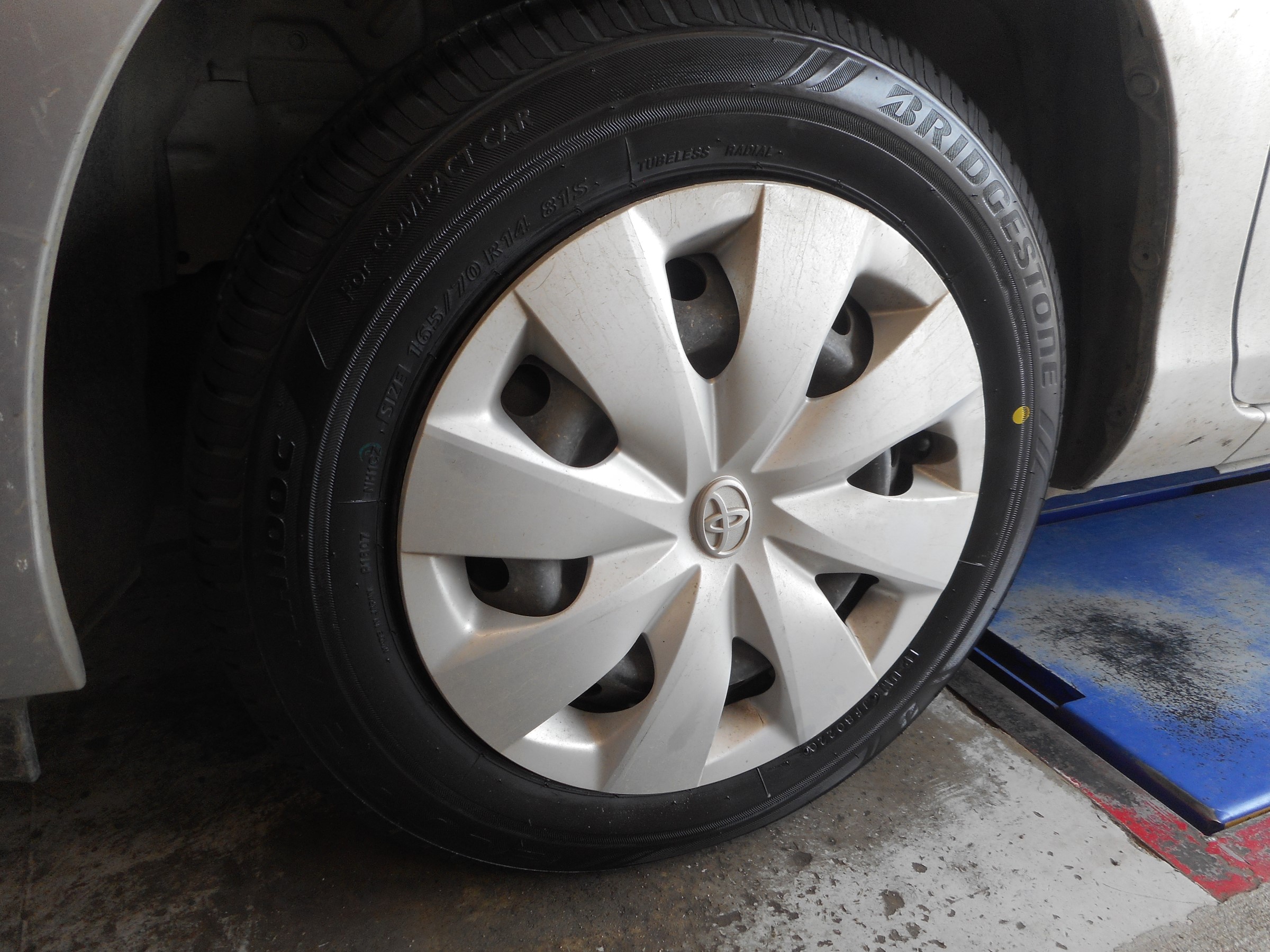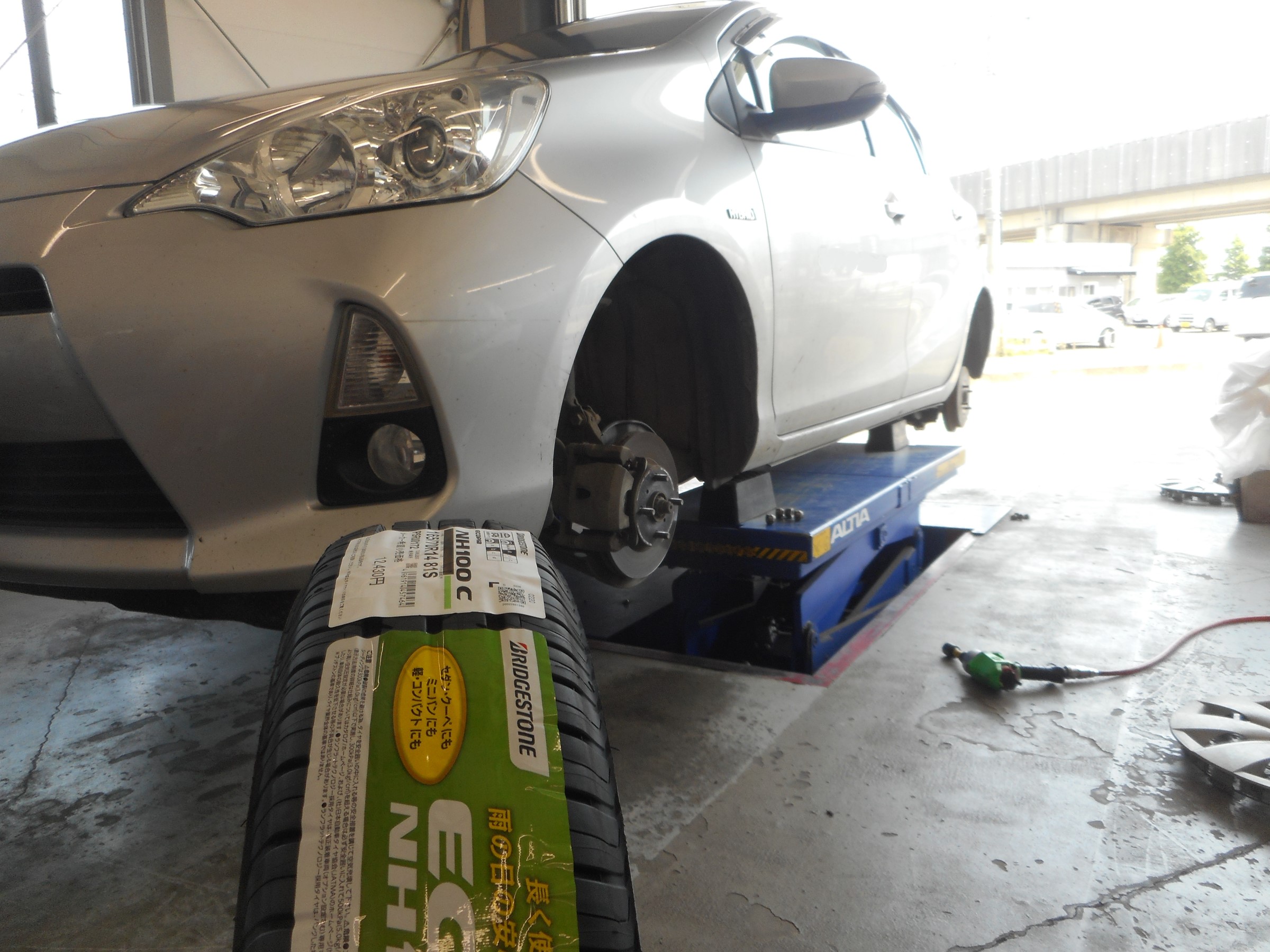 次はタイヤ交換です。長く使っても、雨の日の安心感が長持ちのECOPIA NH100Cをアクアに装着!しかも、すり減りにくく、なが~く使えて経済的なタイヤです。