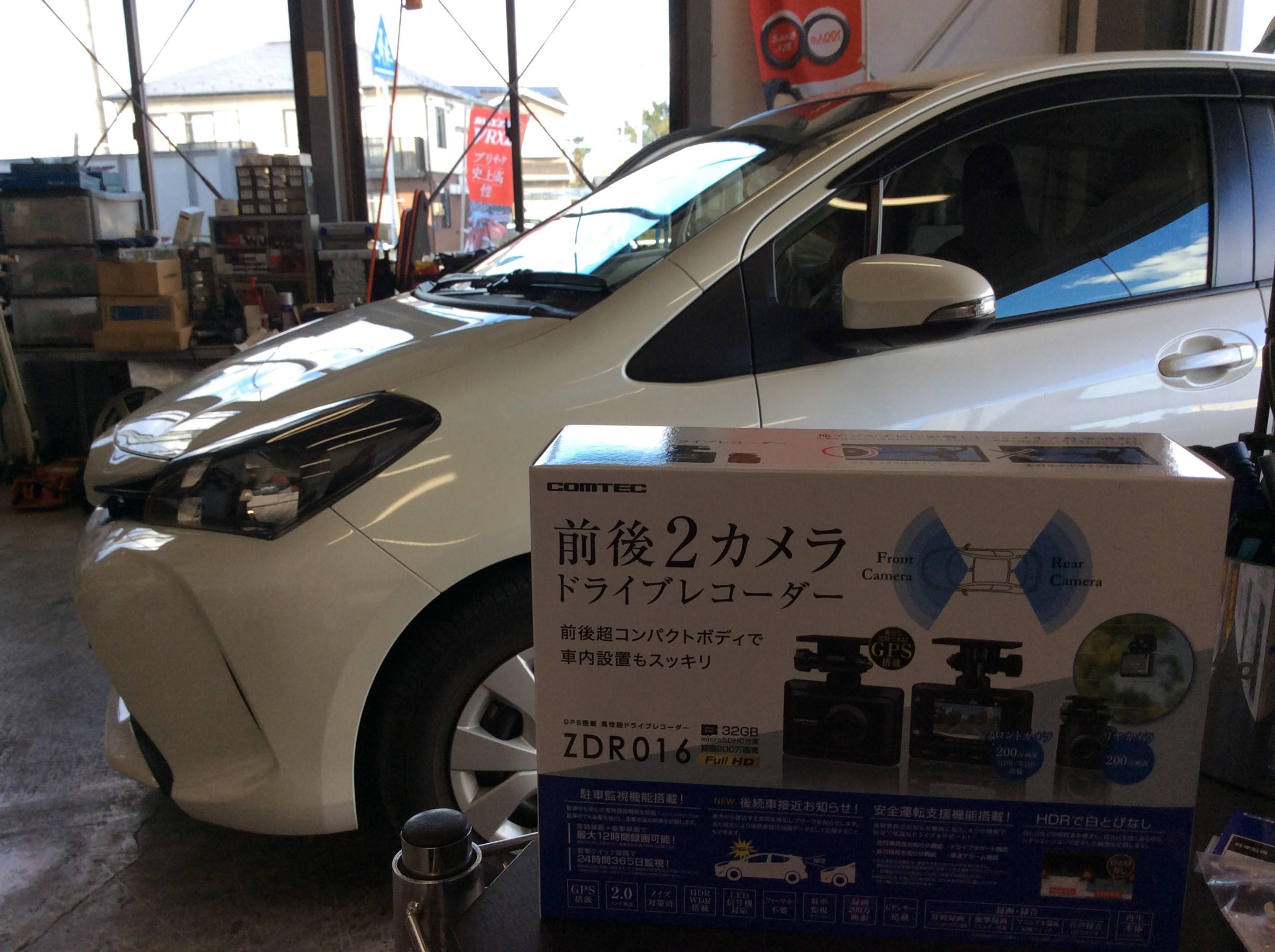 ヴィッツにCOMTEC ZDR016 前後2カメラ取り付けます。