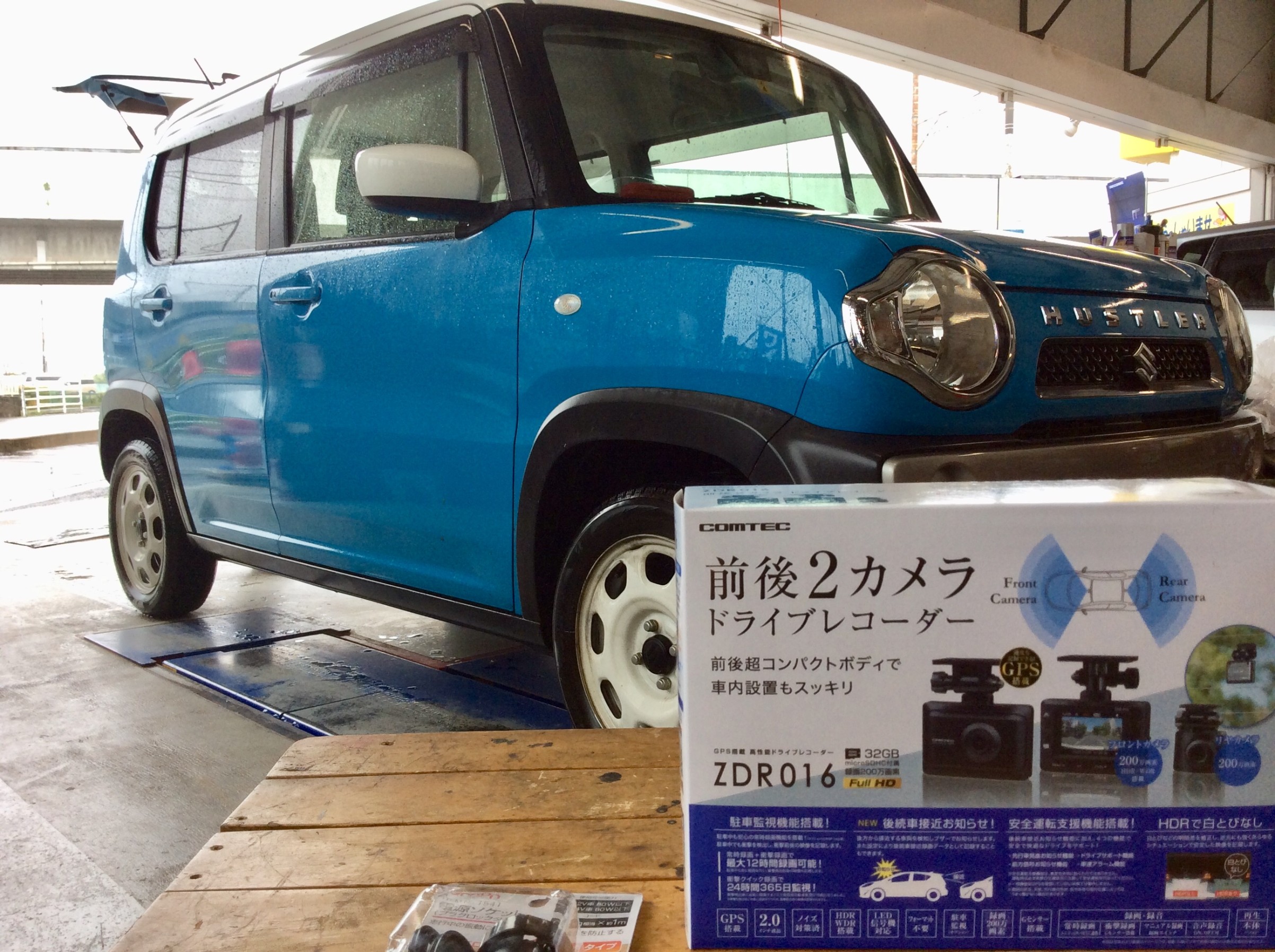 ハスラーに、COMTEC製2カメラドライブレコーダーZDR016を取り付けます!(^^)!ちなみにこちらのドライブレコーダーは在庫が御座いますのでご相談下さい!