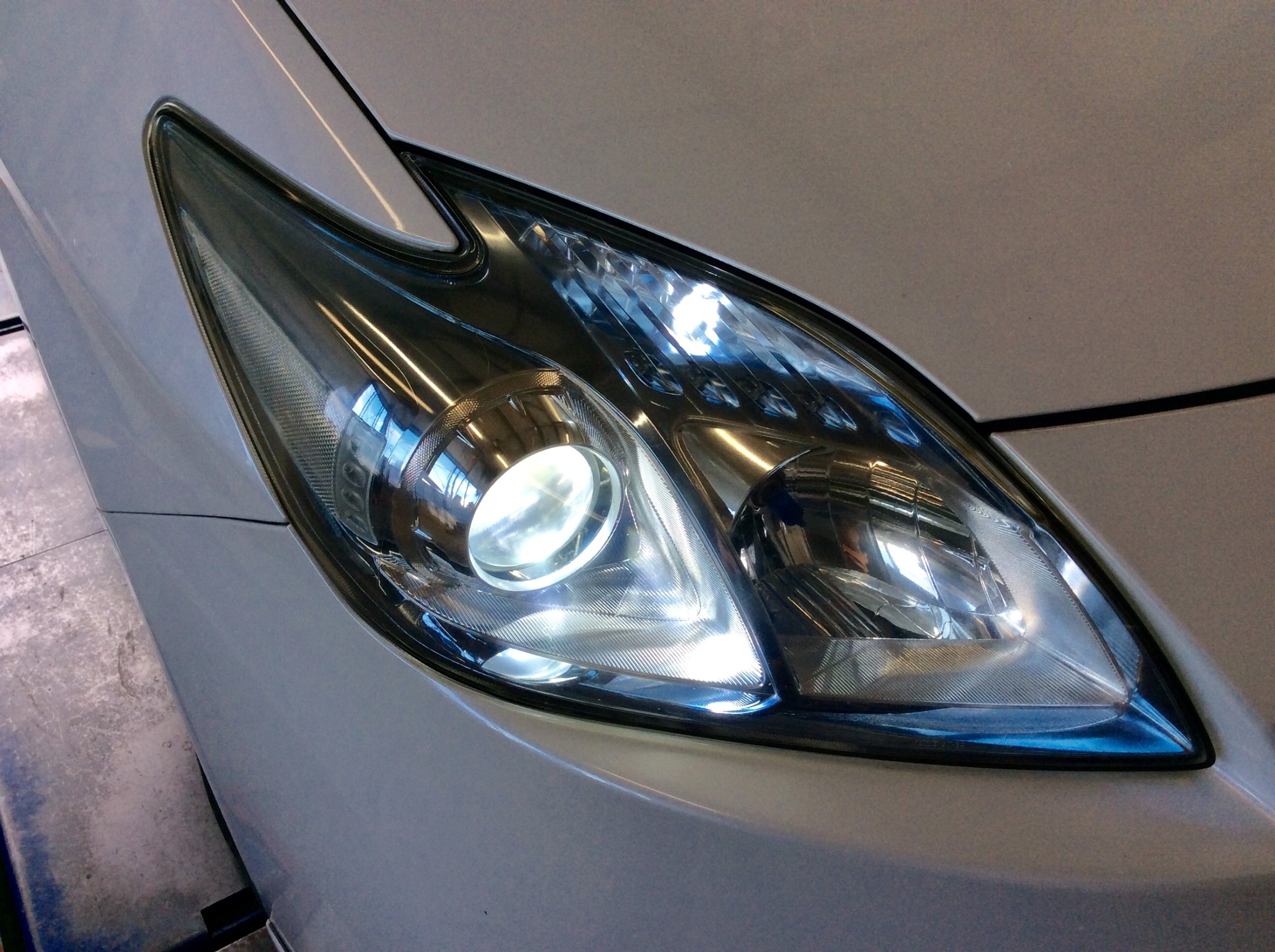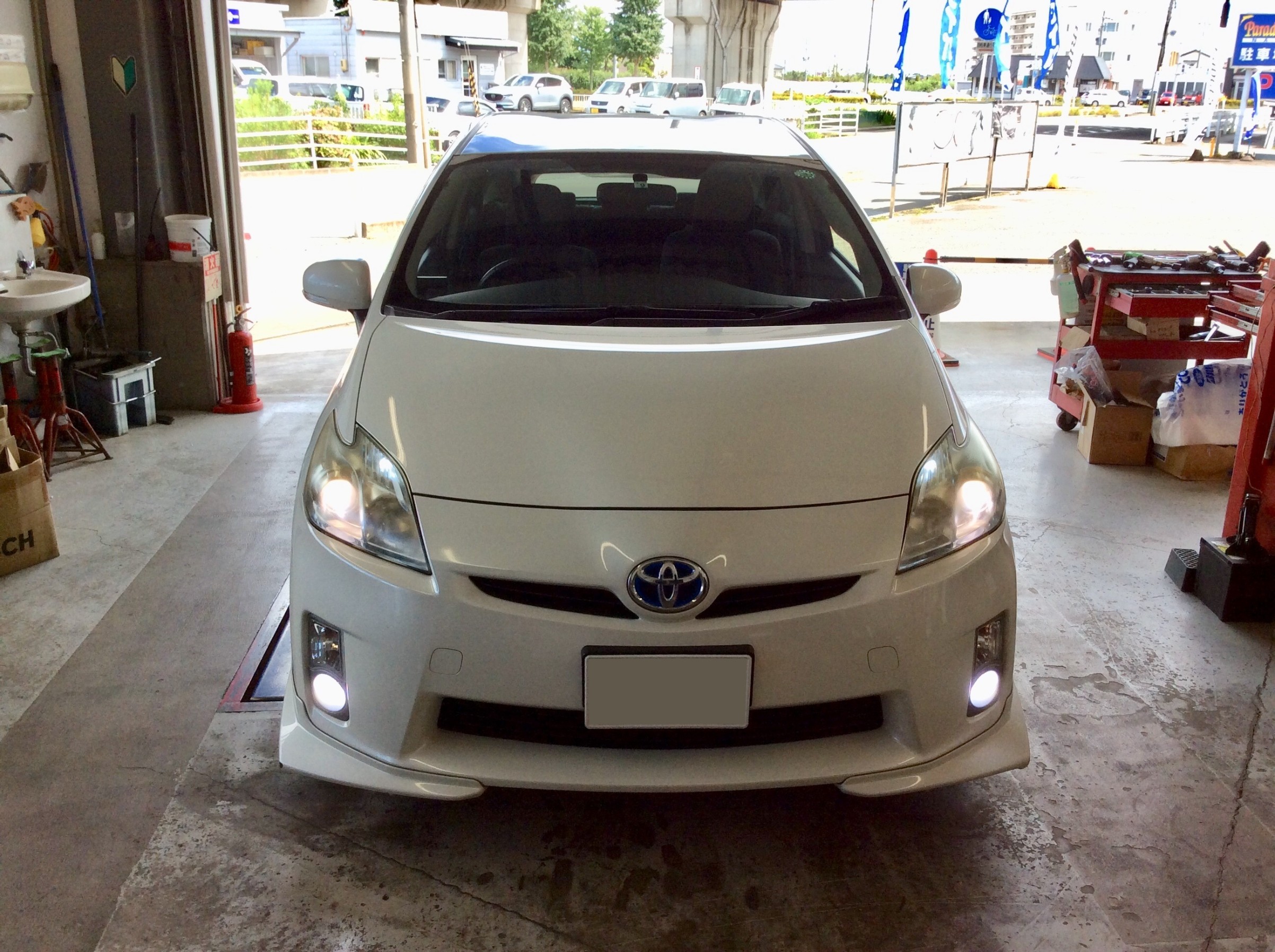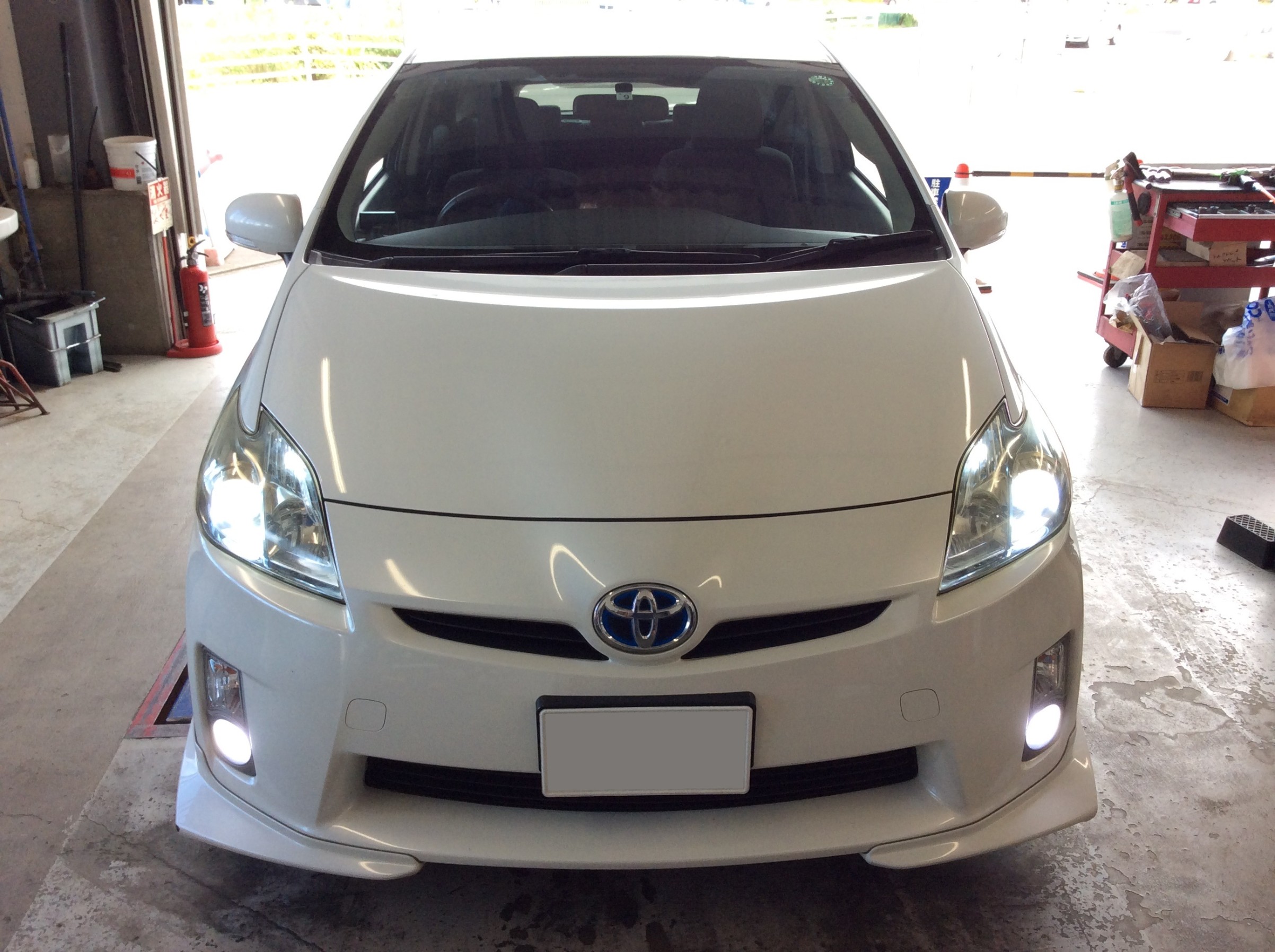 こちらは交換前の社外HIDキットになりますが、年数が経過し光量が落ちてきてるようです。