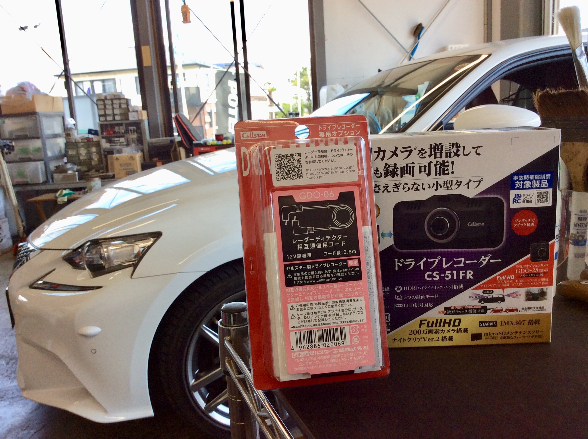 レクサスに、CELLSTAR CS-51FR ドライブレコーダーを取り付けます。