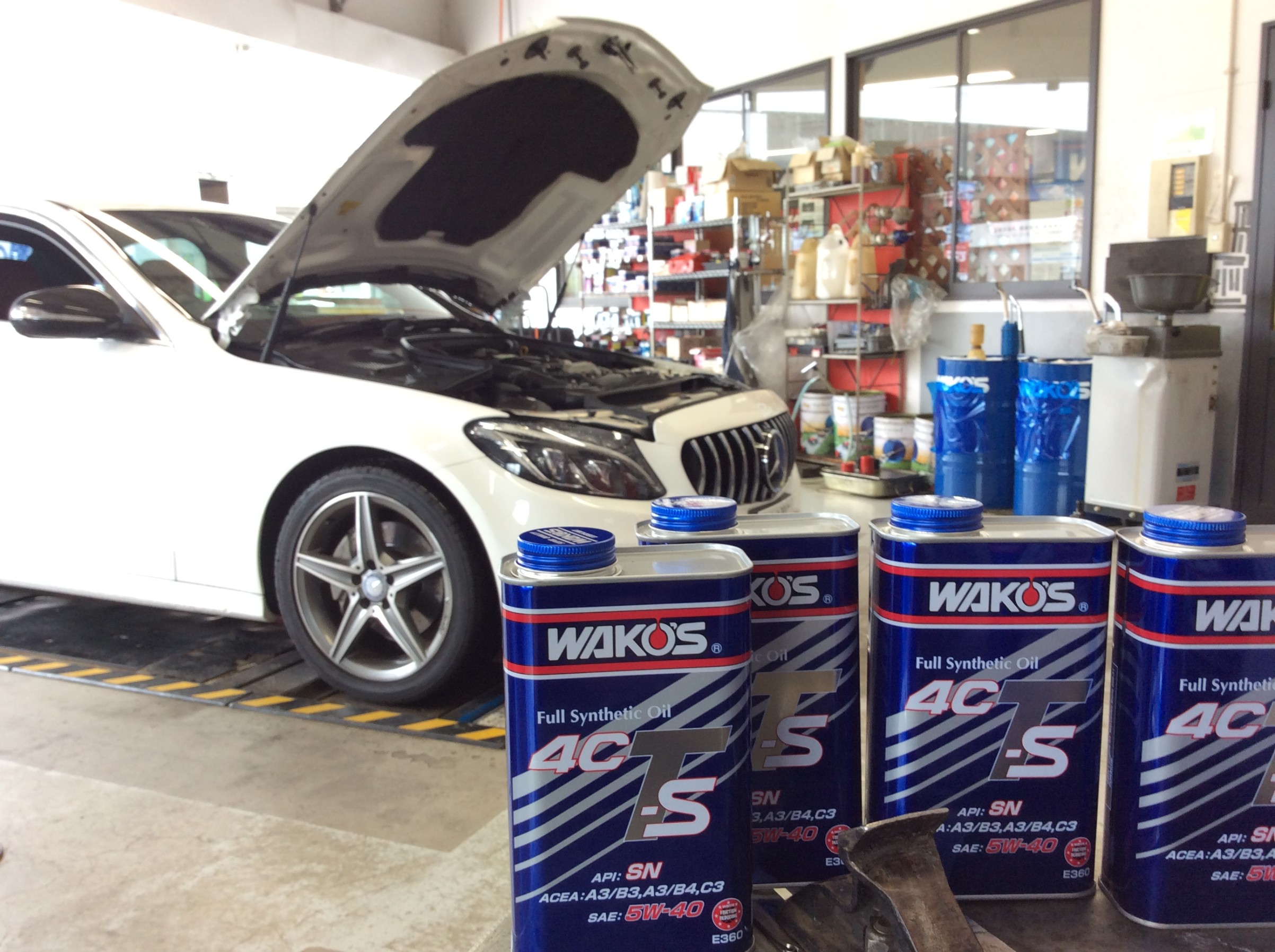 メルセデス・ベンツCクラスのオイル交換!使用したオイルは、100%化学合成オイルのWAKO'S 4CT-S 5W-40を使用しました!