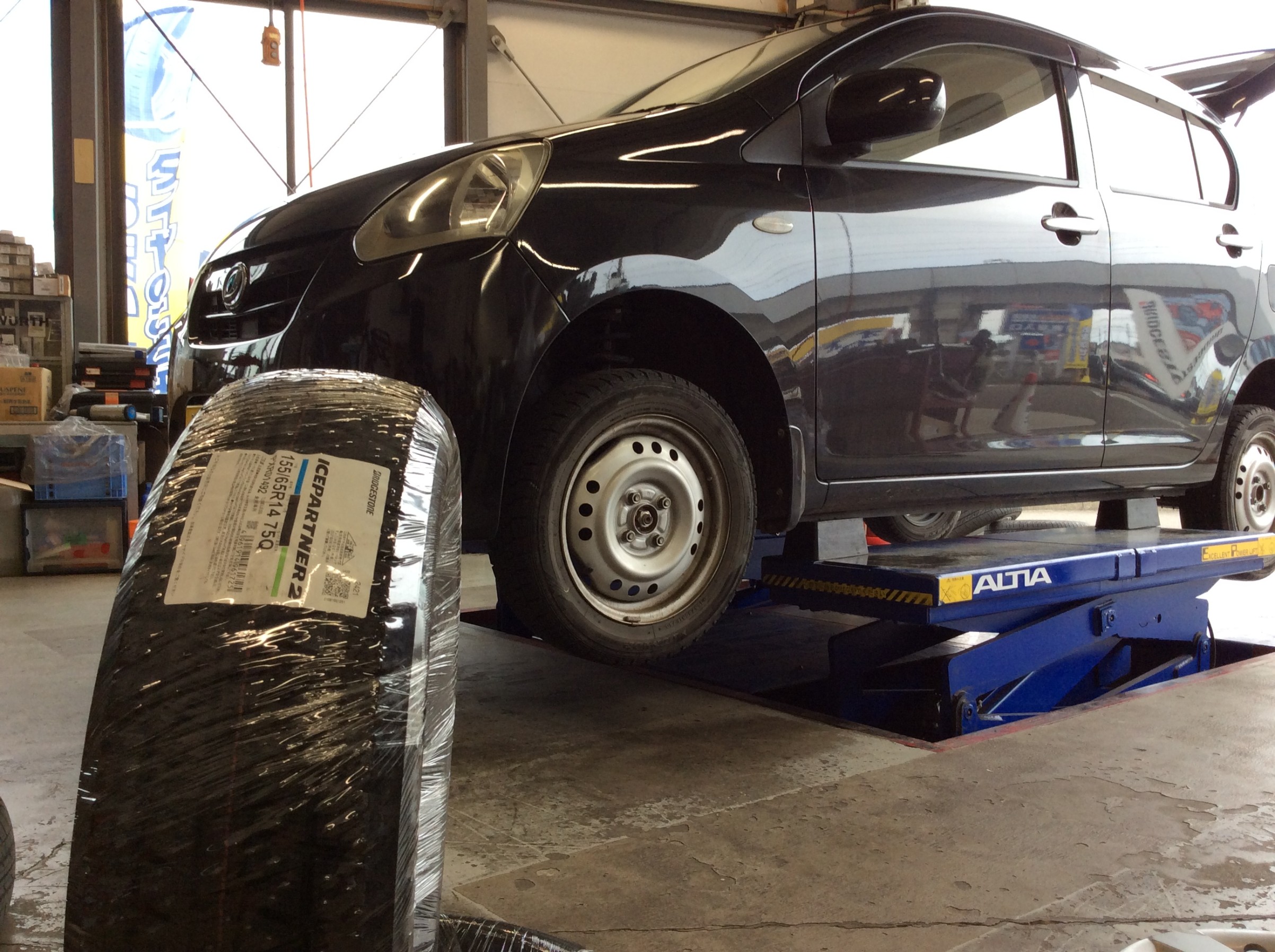 ミライースに、ブリヂストン製スタッドレスタイヤのICEPARTNER2を装着!