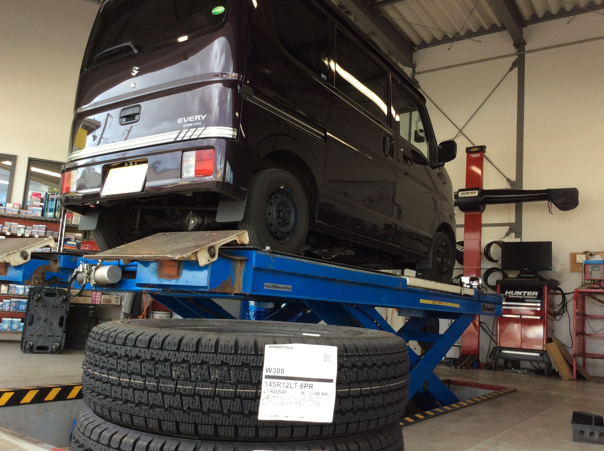 エブリイに、ブリヂストン製スタッドレスタイヤのW300を装着!
