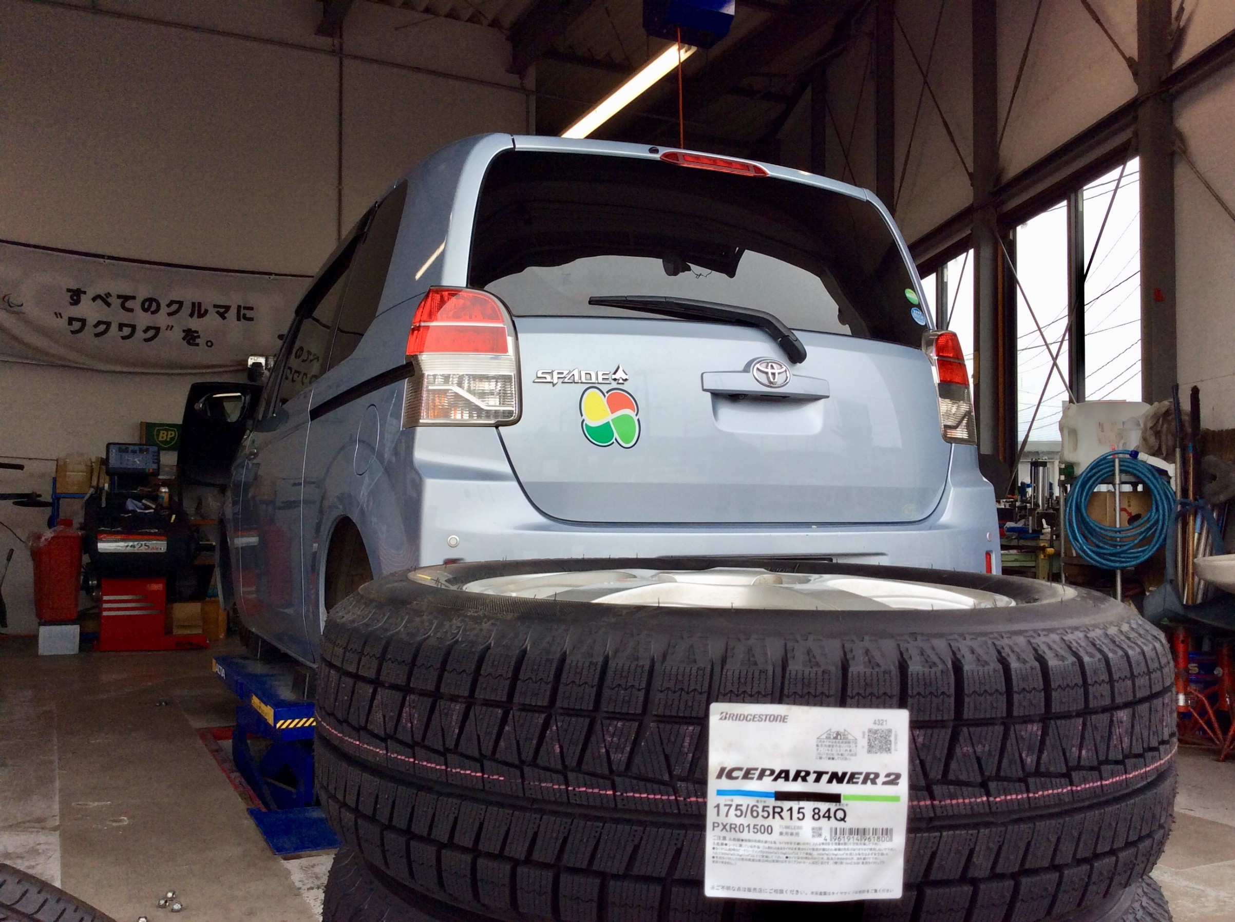 スペイドに、BRIDGESTONE製スタッドレスタイヤのアイスパートナー2を装着!