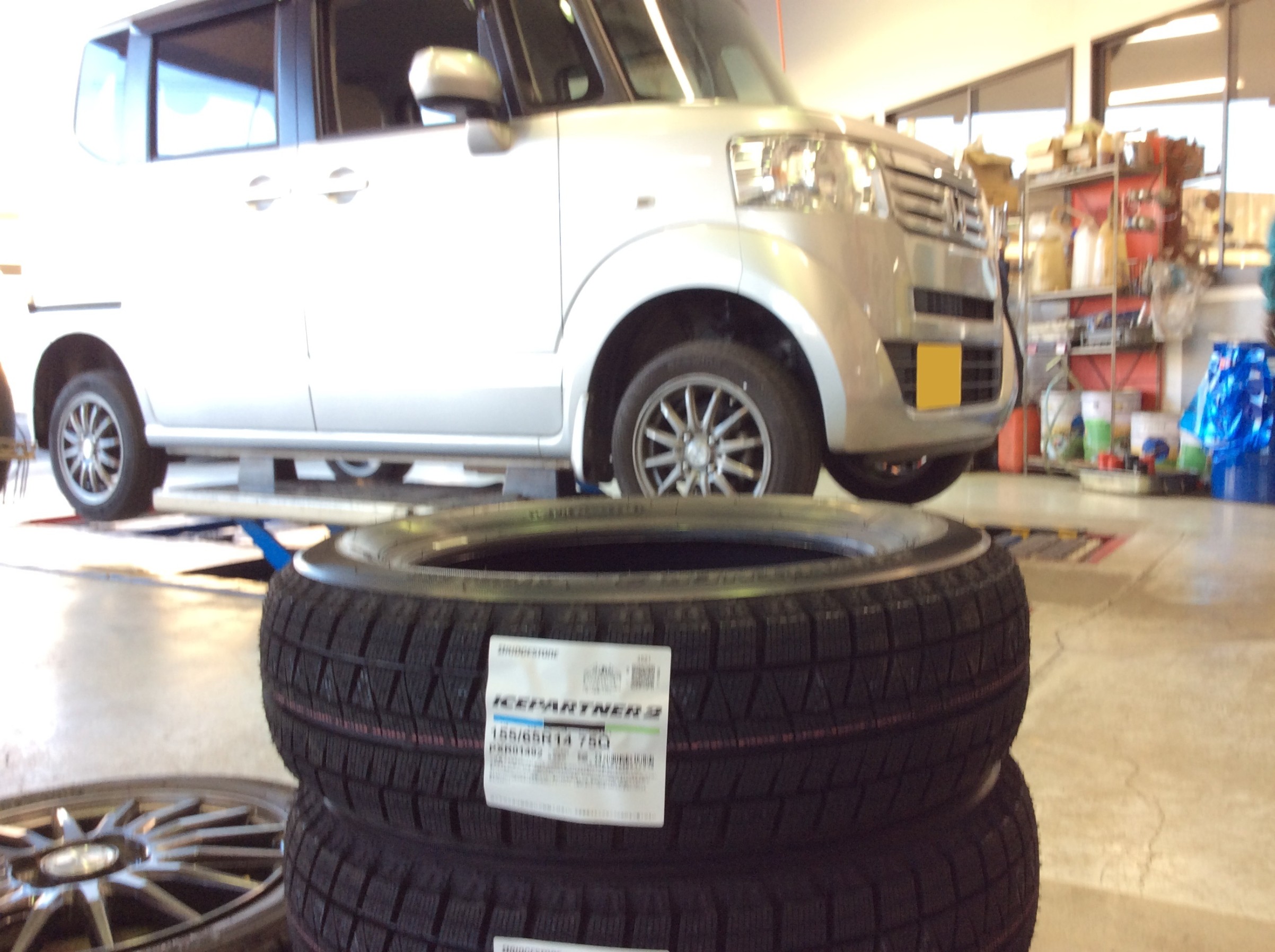 N-BOXに、BRIDGESTONE製スタッドレスタイヤのアイスパートナー2を装着!ご利用ありがとうございます!