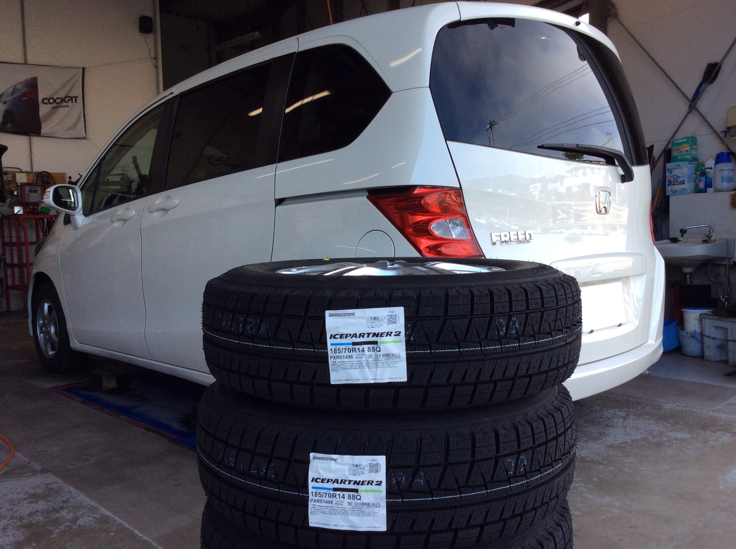 フリードに、BRIDGESTONE製スタッドレスタイヤのアイスパートナー2を装着!ご利用ありがとうございます!