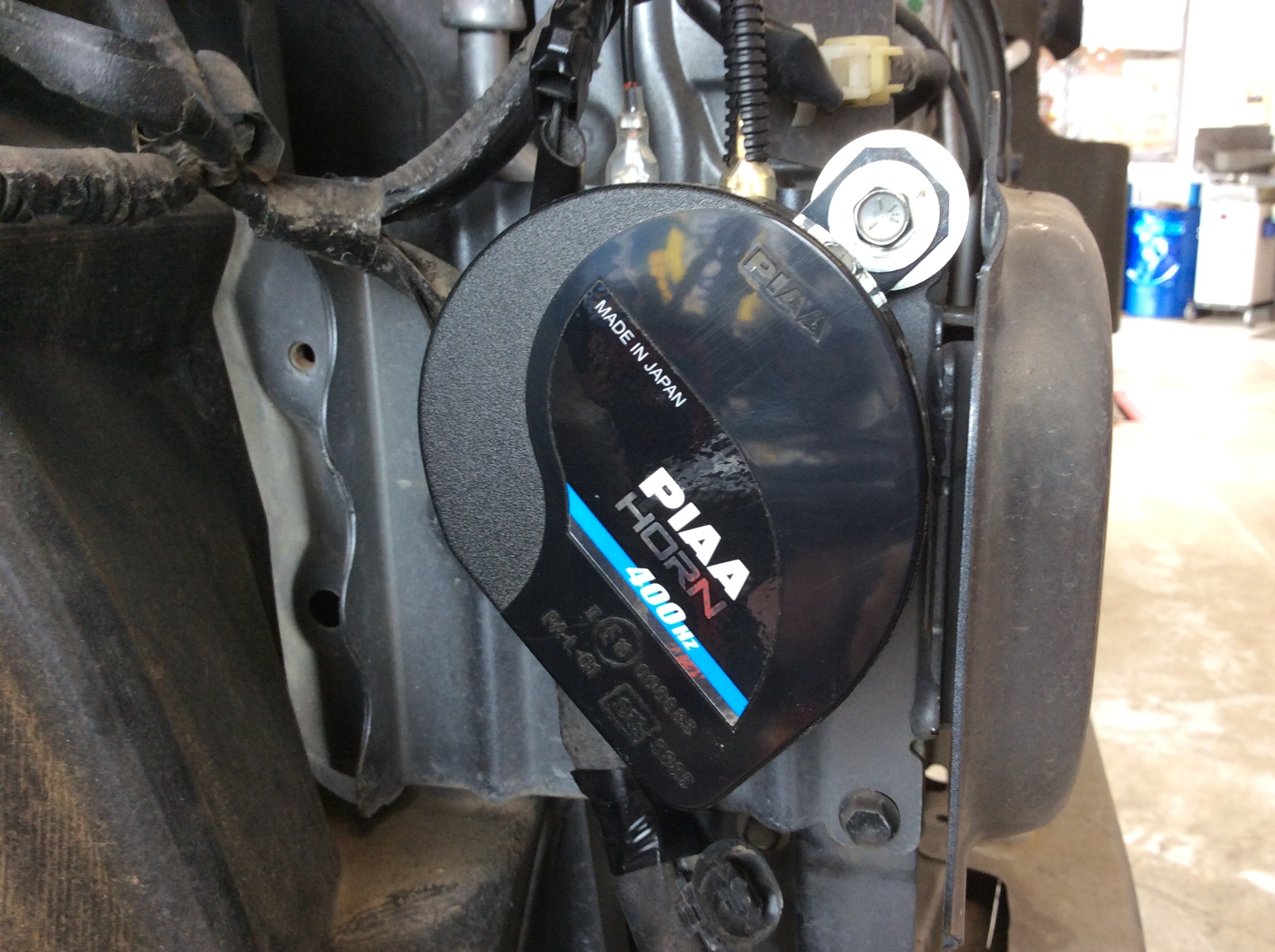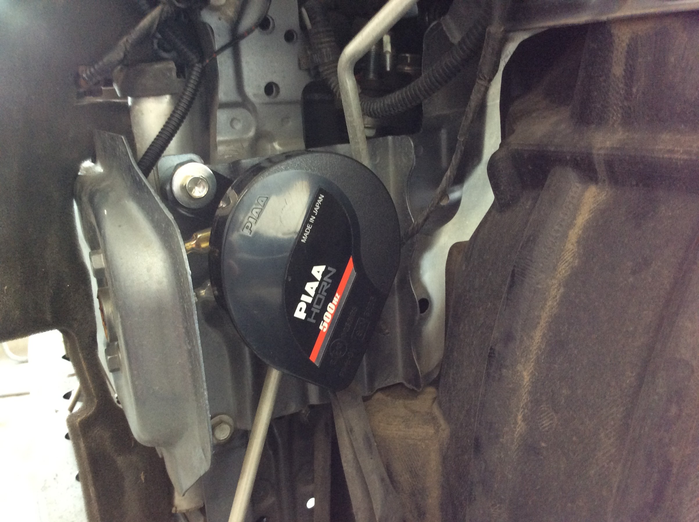 こちらPIAA製ホーンですが、純正と違い2個のホーンを取り付けます。まず400Hzを取り付けて