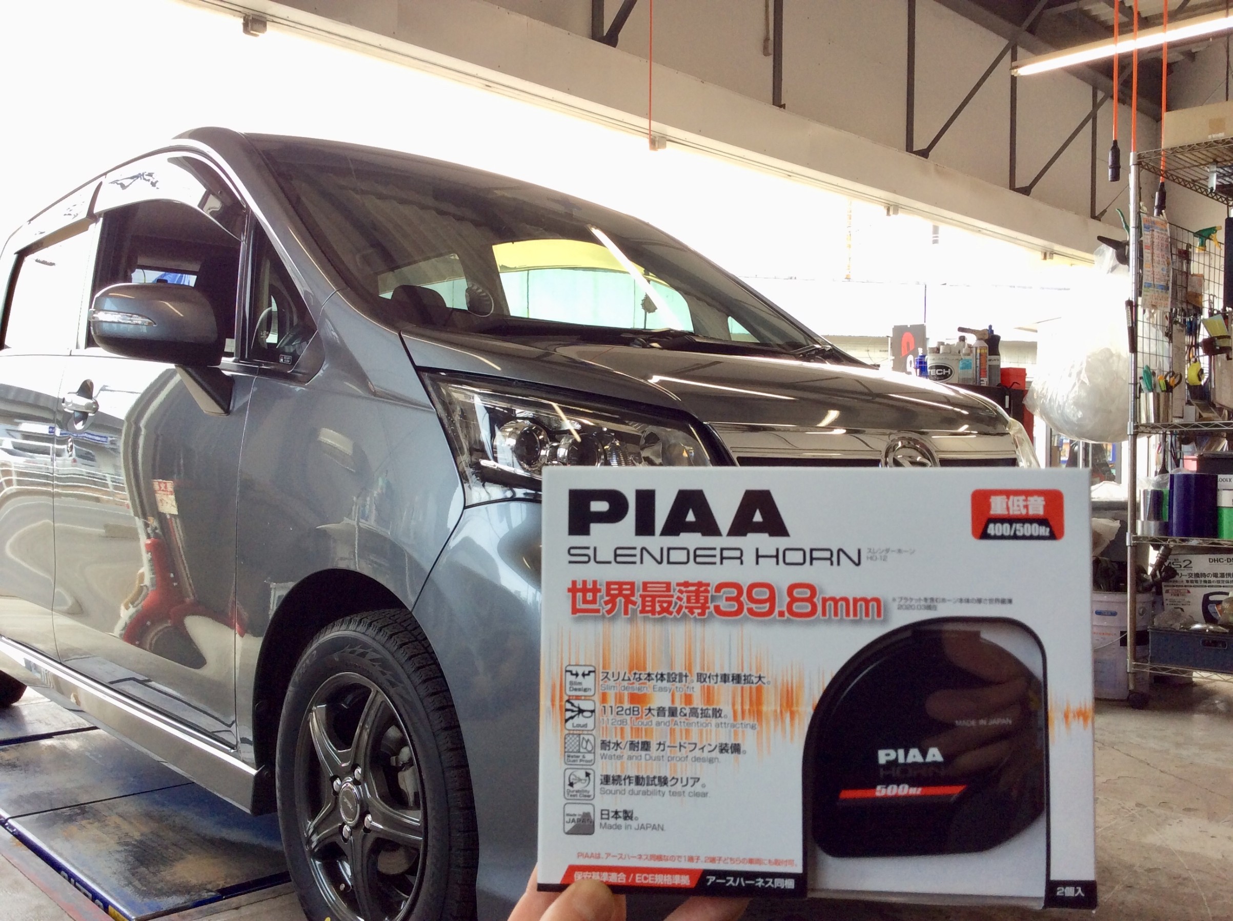 ムーヴのホーンを交換します!使用しますのはPIAA SLENDER HORNです!(^^)!