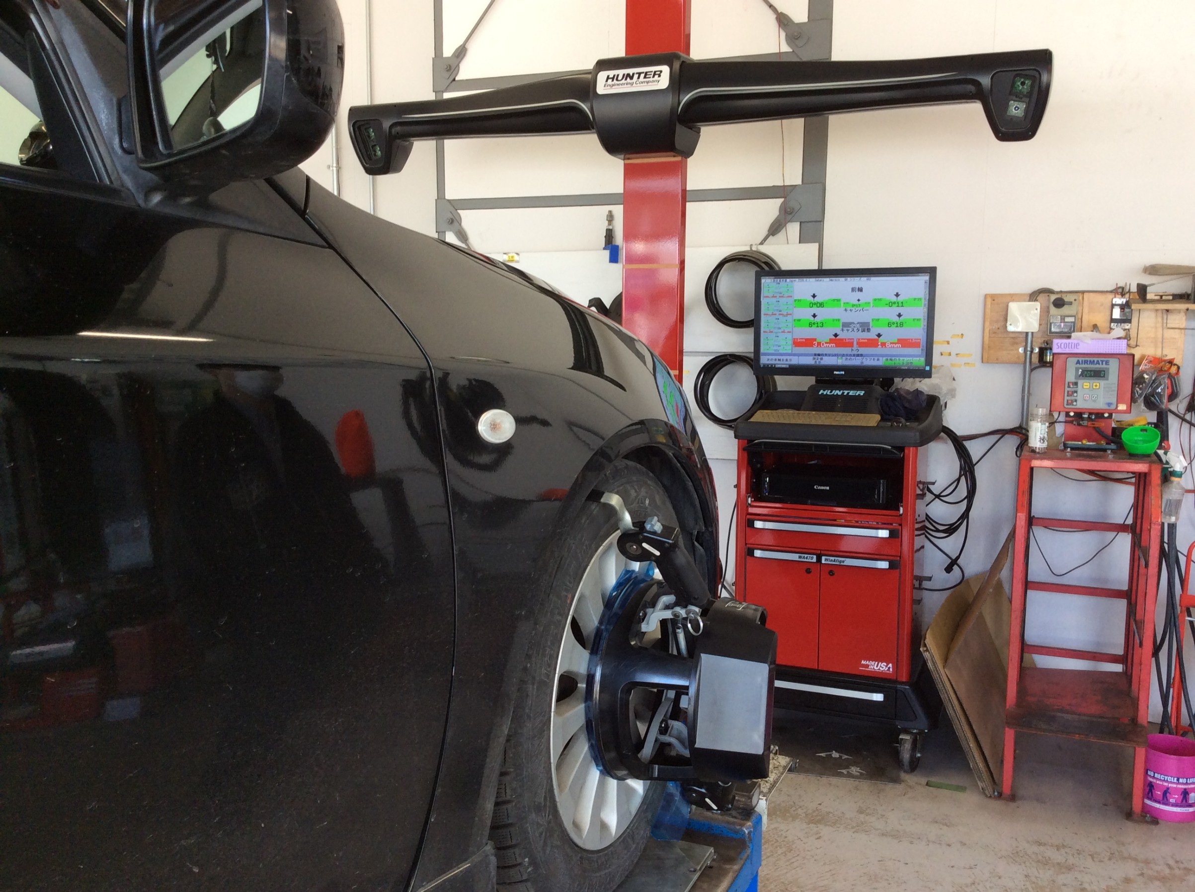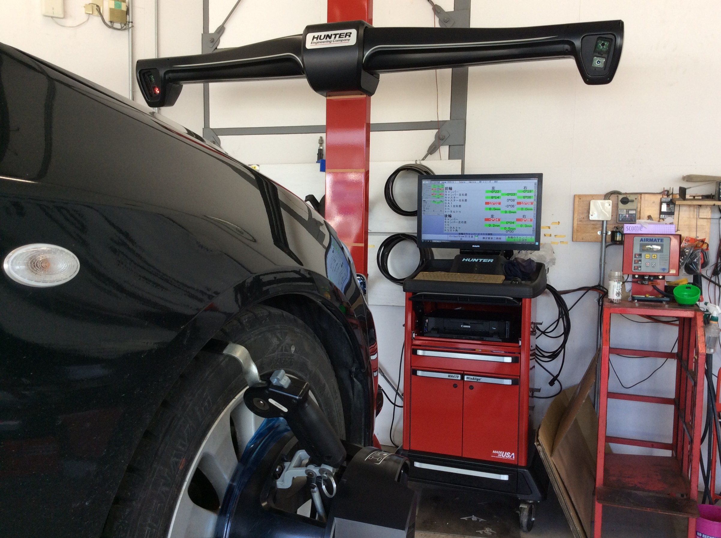 足回りから異音がするとのことでチェックし異音の原因を特定して、直してからアライメント調整に入りました。