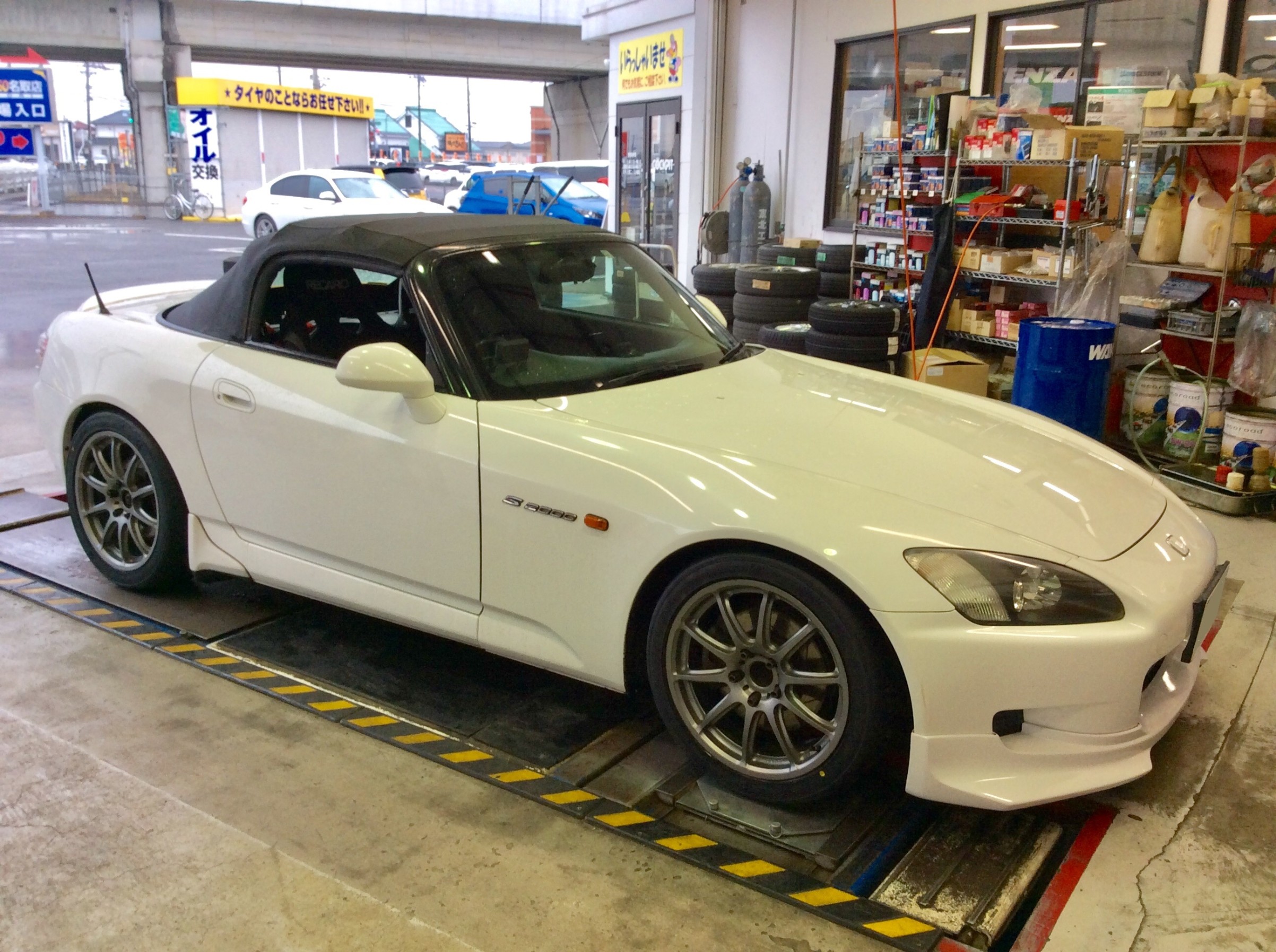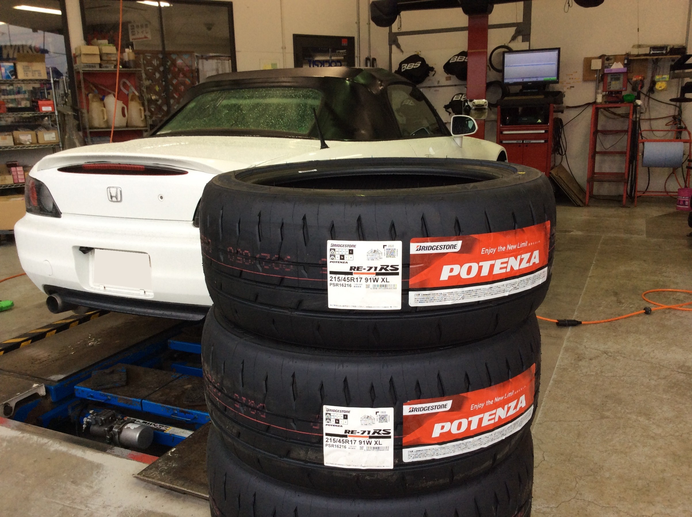S2000に、POTENZA RE-71RSを装着!来月SUGOを走る為に、新品タイヤ投入とアライメント調整をします。