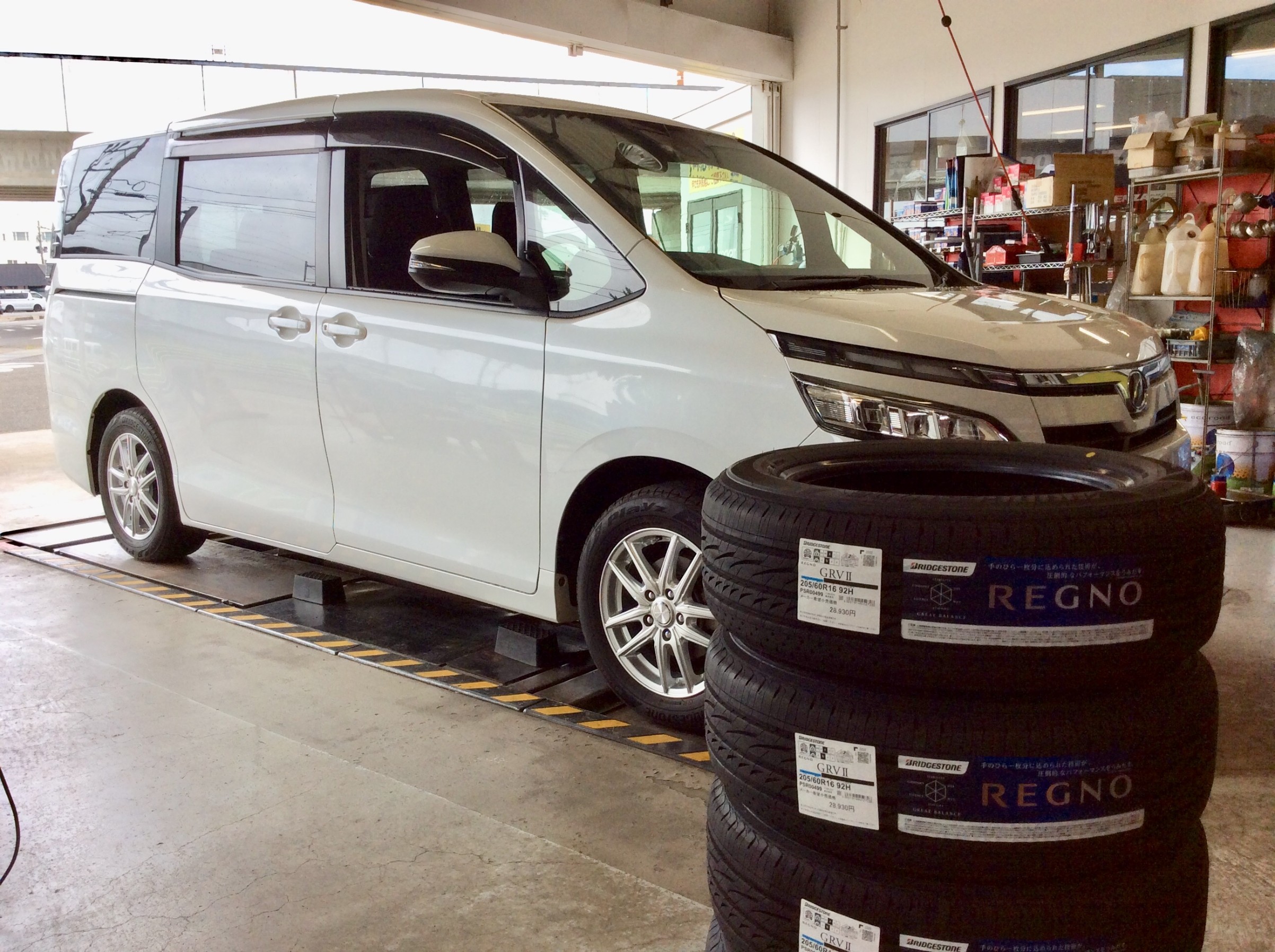 前回、足回り交換したVOXYですが、急遽タイヤ交換になりミニバン専用タイヤREGNO GRVⅡを装着します!