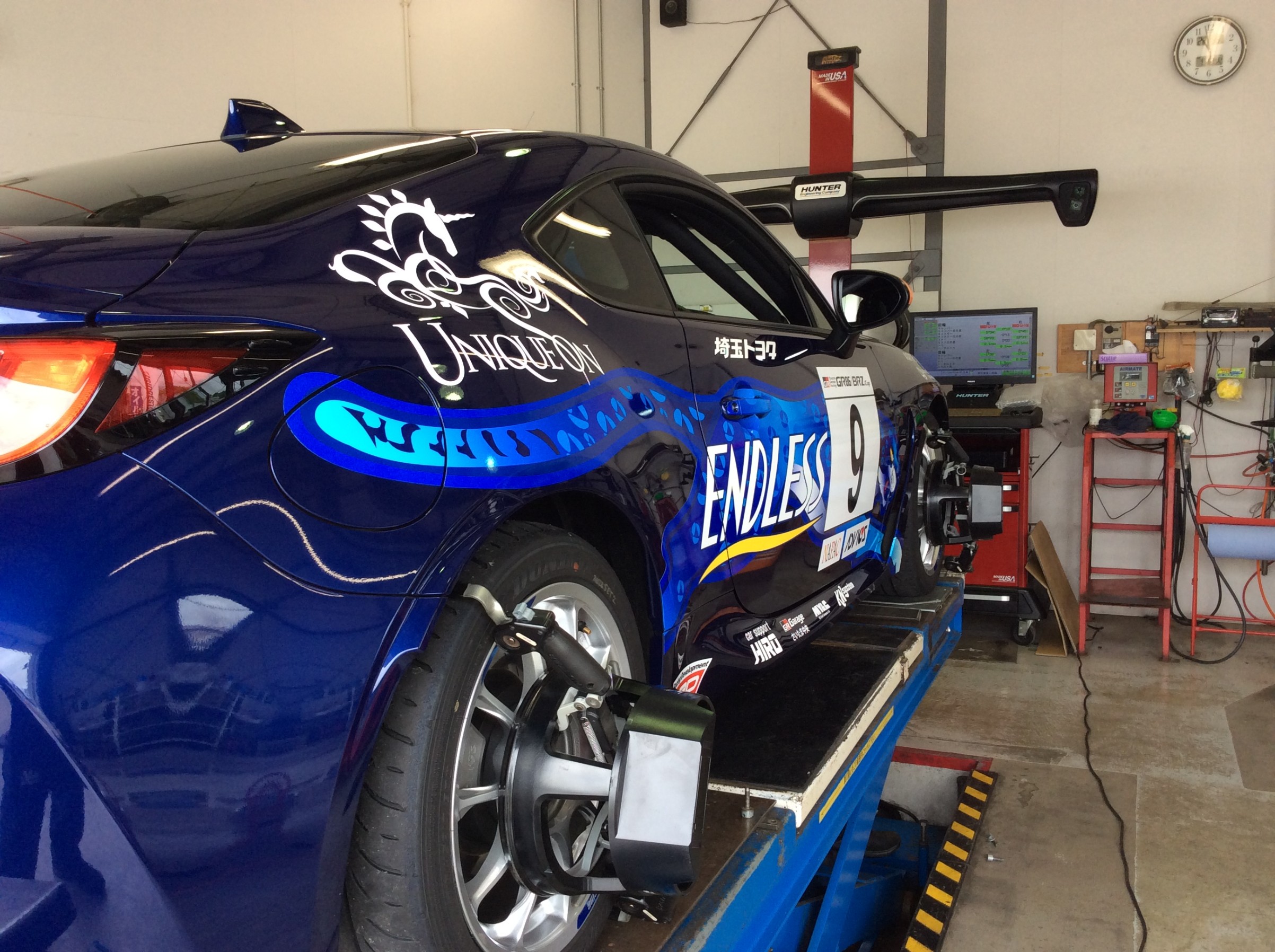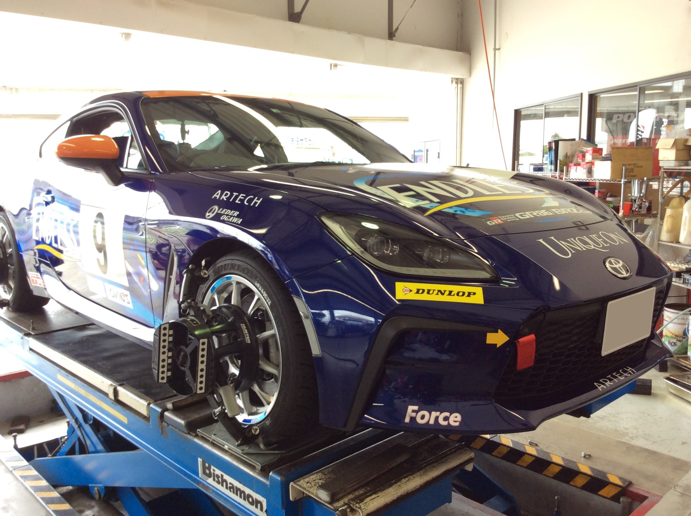 GR86のアライメント調整!レース前の確認、微調整の為入庫しております。