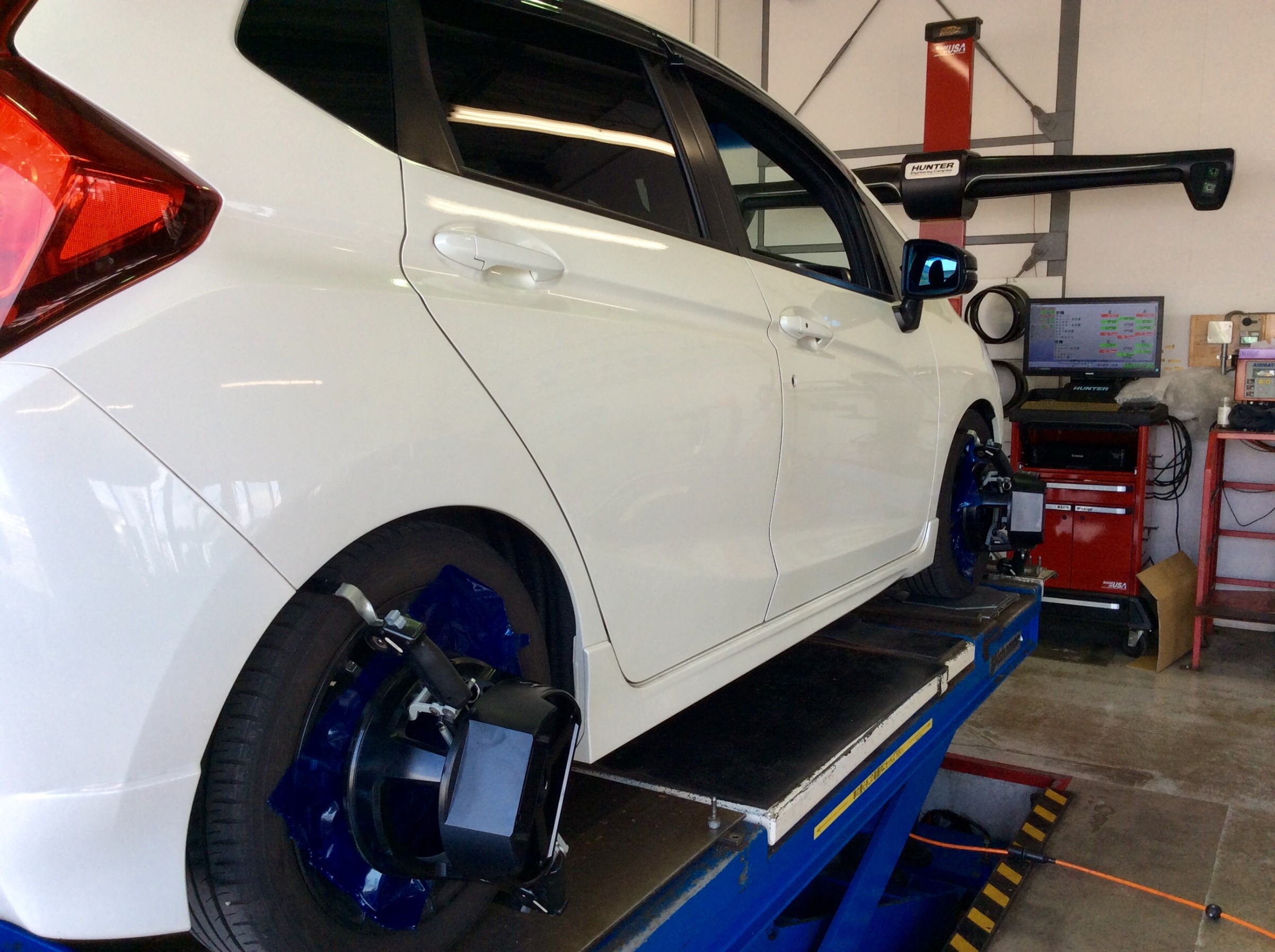 足回りを交換したフィットRSのアライメント調整。ご利用ありがとうございます!
