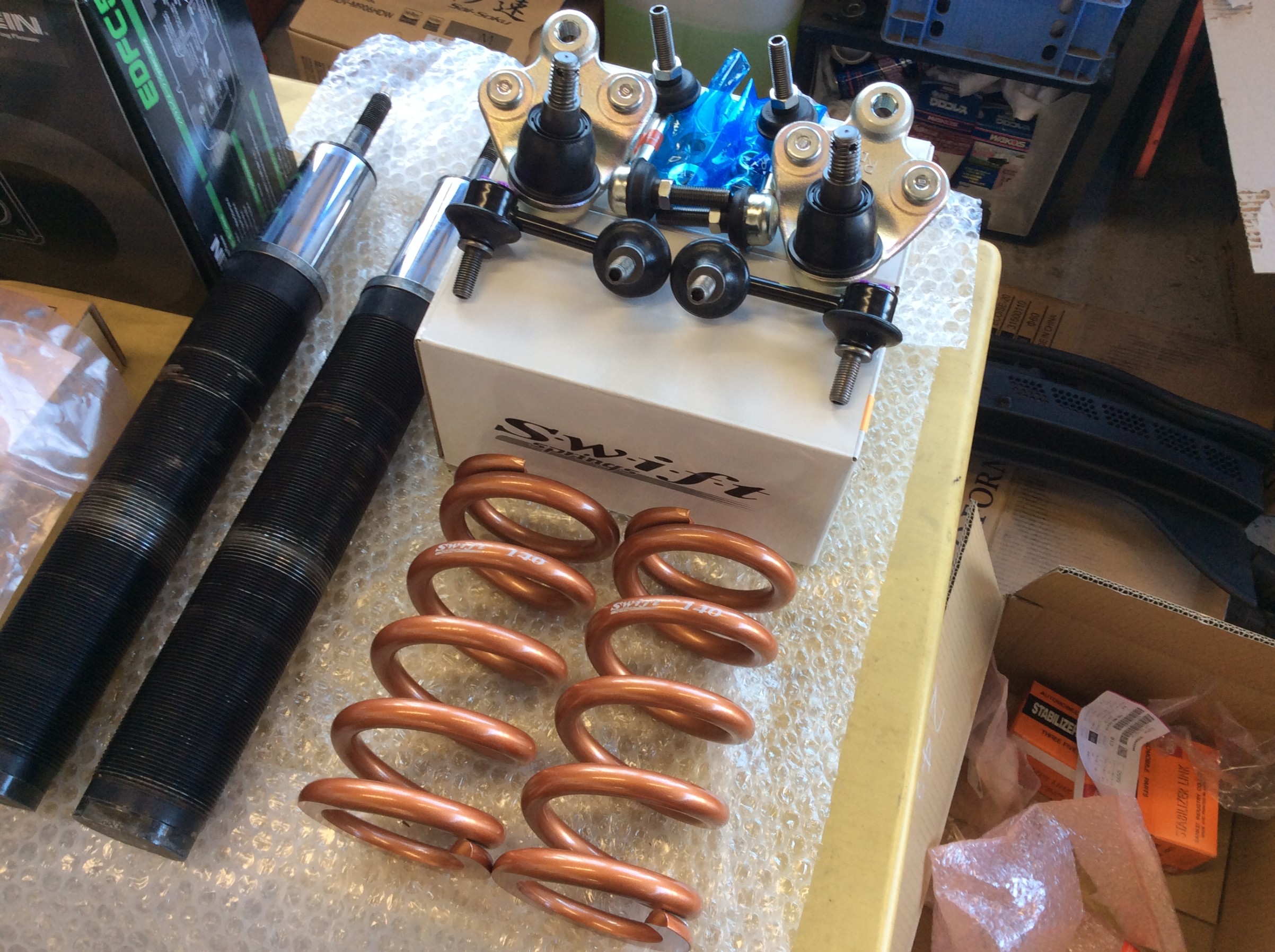 O/Hに出していた車高調が戻ってきたので、用意していたSwiftスプリングを組込み車両に取り付けたいと思います!(^^)!