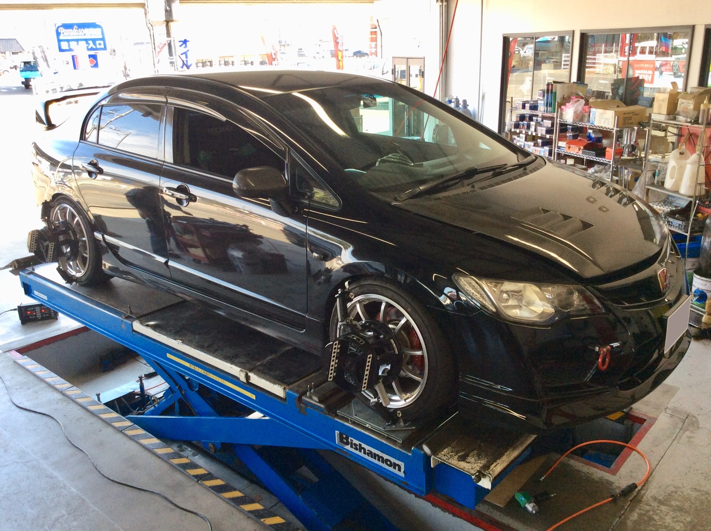 何度か車高調整を行った後、試乗してからアライメント調整をしております。