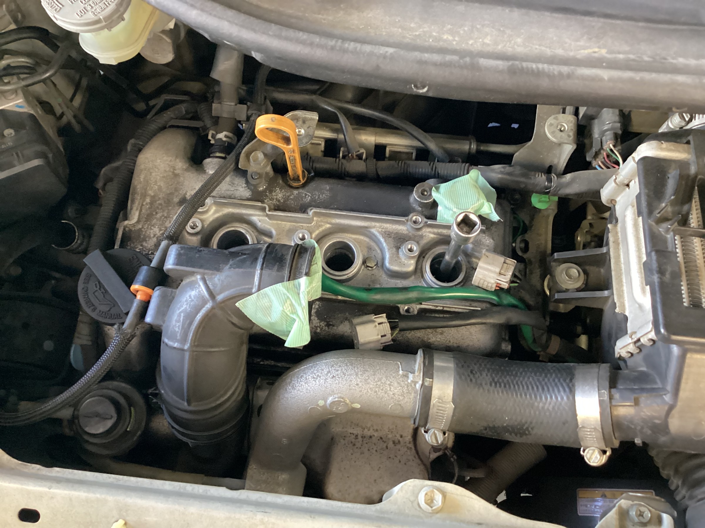 純正エアクリーナーBOXを取り外し、イグニッションコイル、スパークプラグと取り外します。