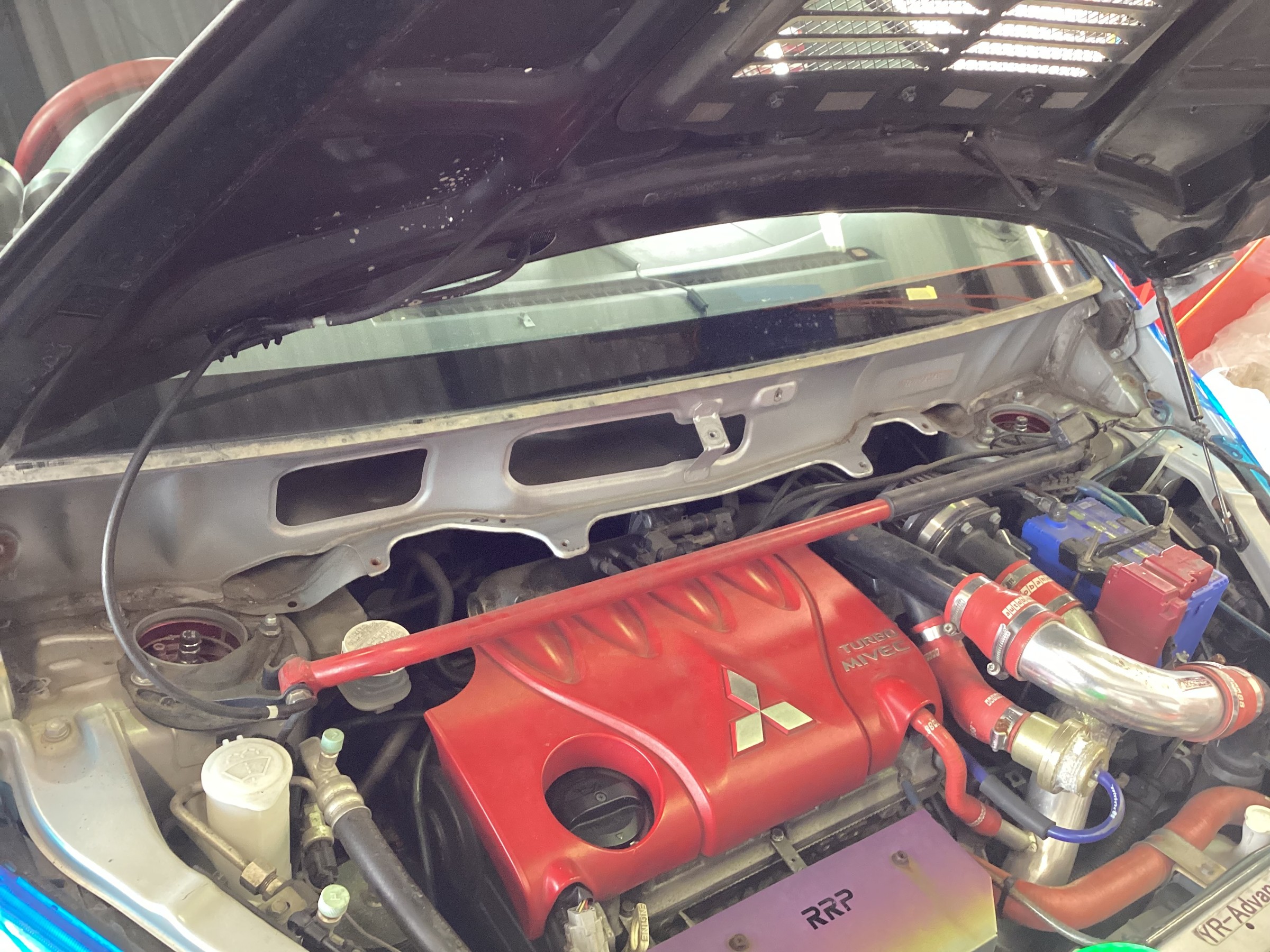 早速作業に取り掛かりたいと思いますが、カウルトップを外さないとアッパーマウントのナットが見えませんね~
