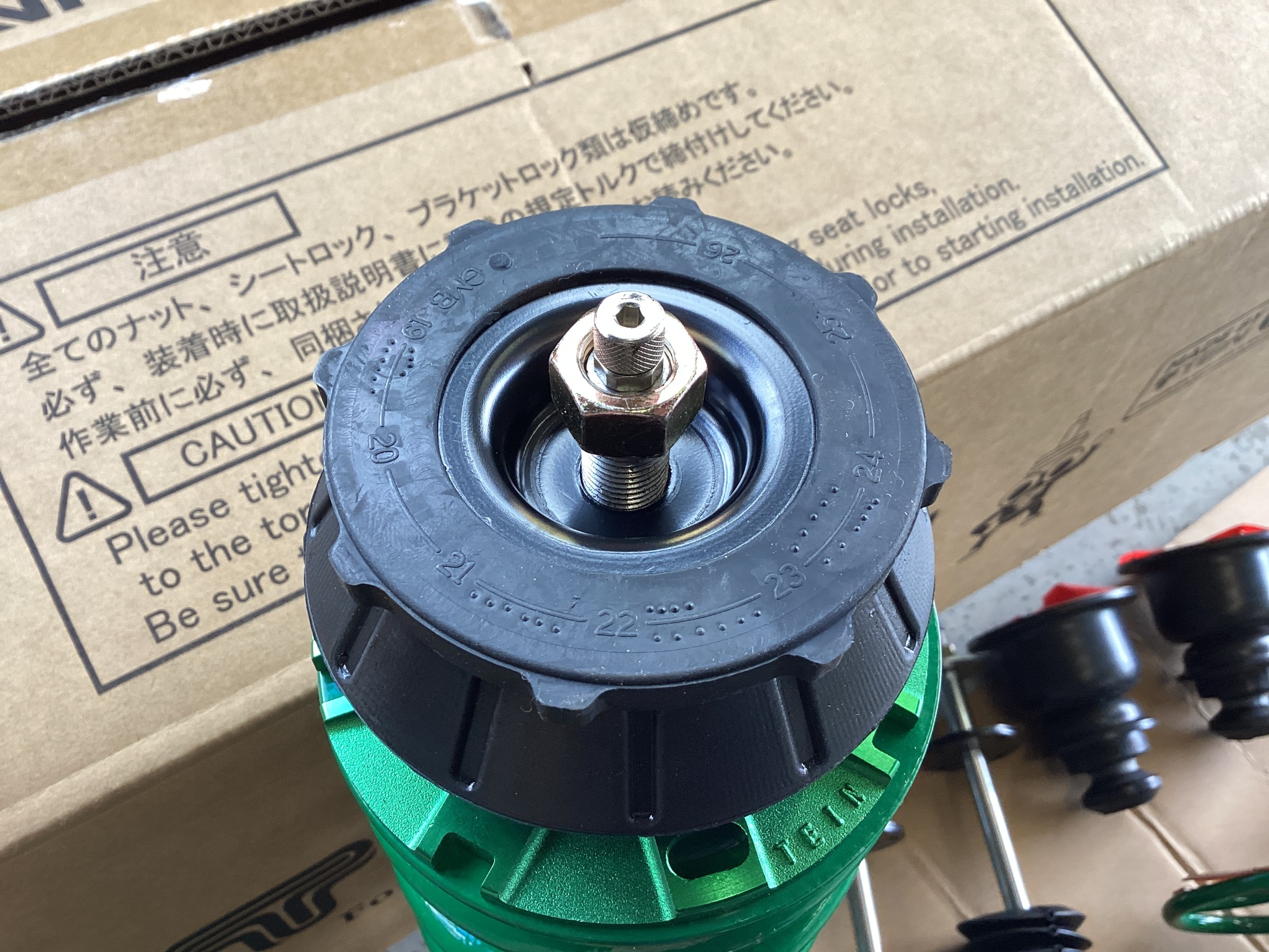 こちらの車高調ですが、ネジ式車高調整機構を採用しており、ロアスプリングシートを上下に移動することで車高調整が可能で、シンプルで扱いやすい構造となってるのもポイントです(^^♪