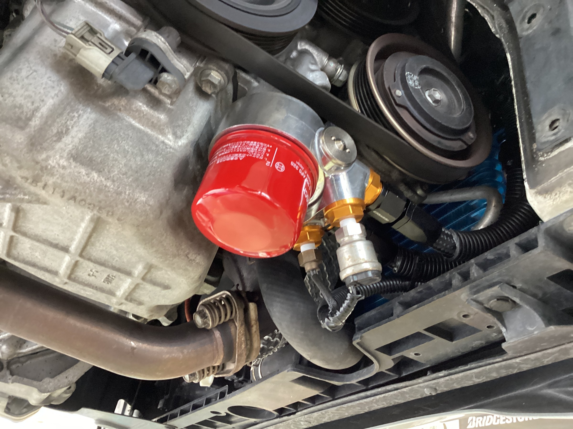 しかしですね、オイルフィルターの位置にサンドイッチブロックを使用する為、油温、油圧センサーが若干下に飛び出します。