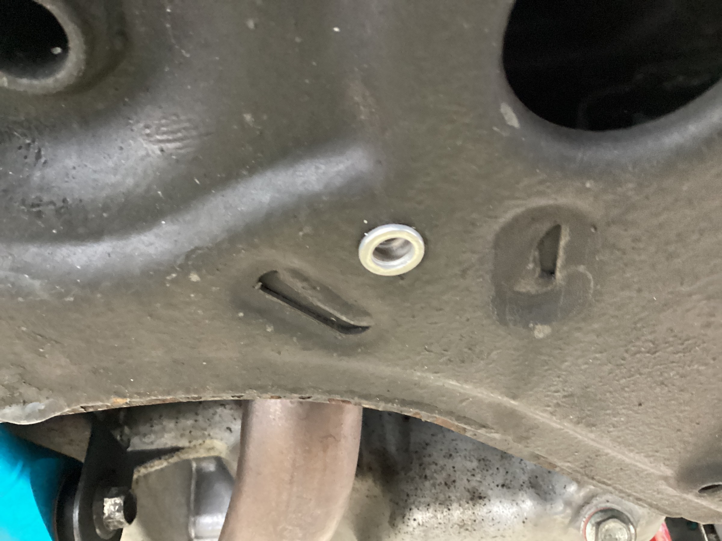 取り外した純正タービンですが、取り外すときにボルト2本が折れてしまいました!再使用することは無いので問題ありませんが、年数が経っていたり、走行距離を重ねていたりすると折れずに外すのが難しい場所ですね。