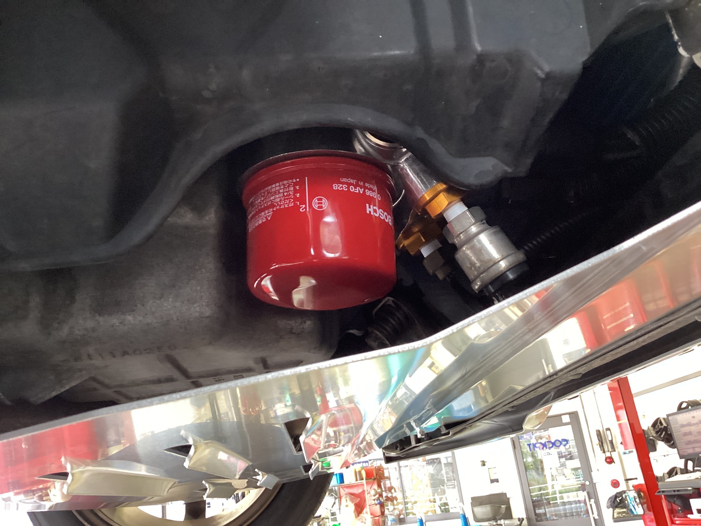 これでアンダーパネル内のセンサーやオイルエレメントは、飛び石などから保護されますね。そしてエンジンを始動しオイル漏れが無いか確認後、試乗して完成です!