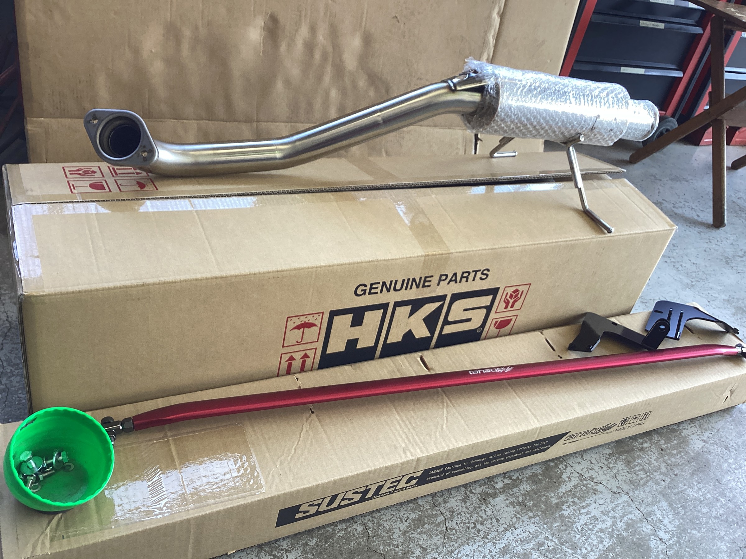 今回は、HKSマフラー Silent Hi-Powerと、Tanabe Sustec STRUT TOWER BARを取り付けたいと思います!