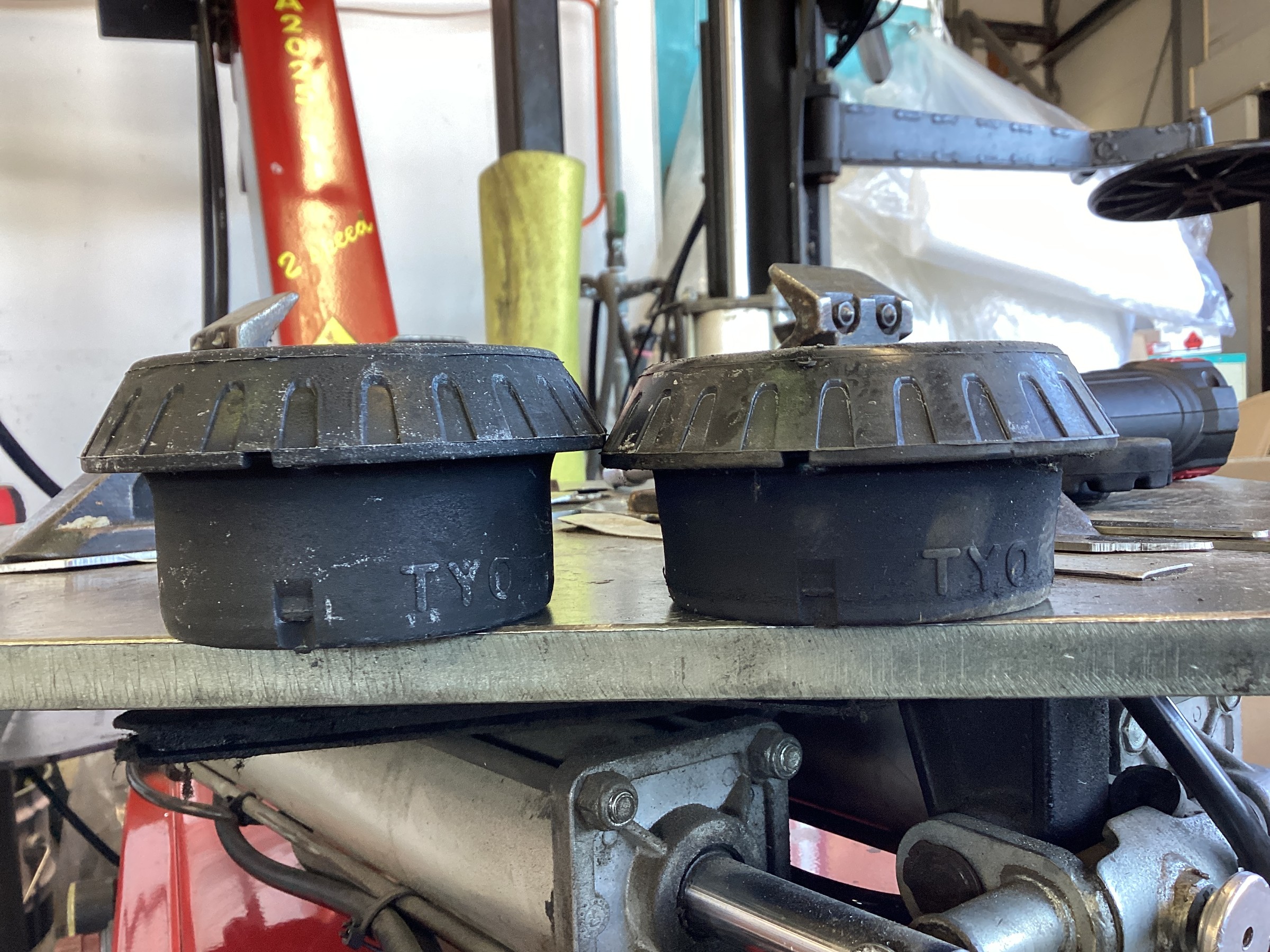 左が新品のアッパーマウントで、右が今まで使用していたアッパーマウントになります。