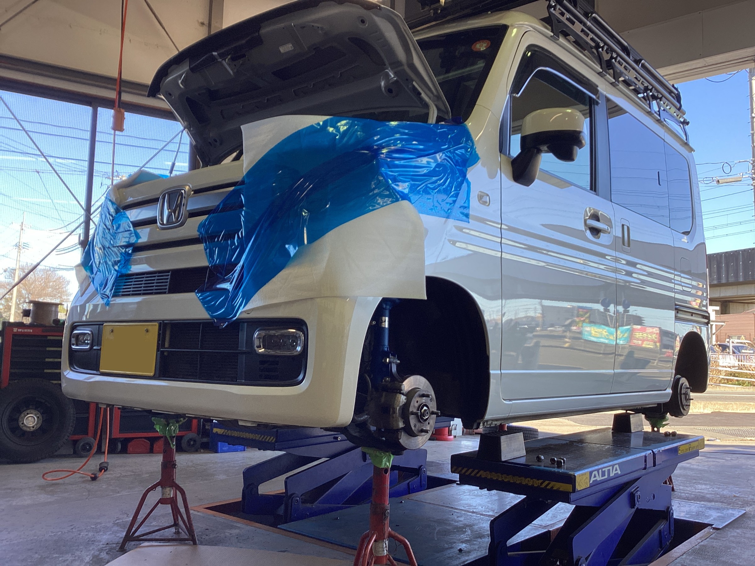 約1ヶ月ほど続いたスタッドレスタイヤ交換作業が落ち着いてきたので、6月にご注文頂いておりましたKYBショックアブソーバー NEW SR MCをN-VANに取り付けたいと思います!