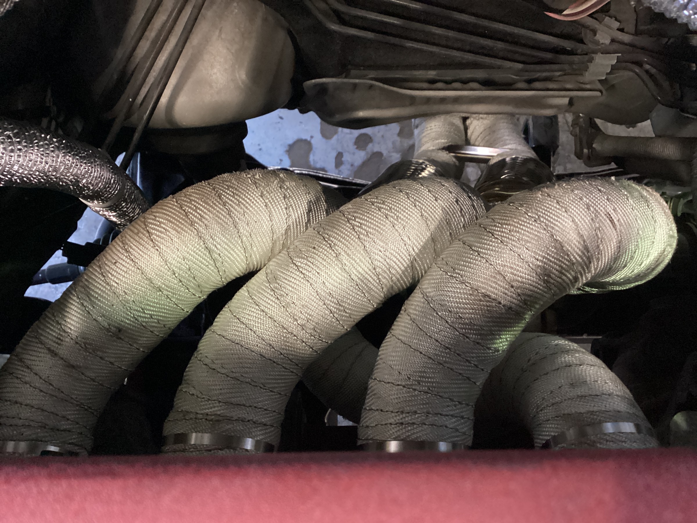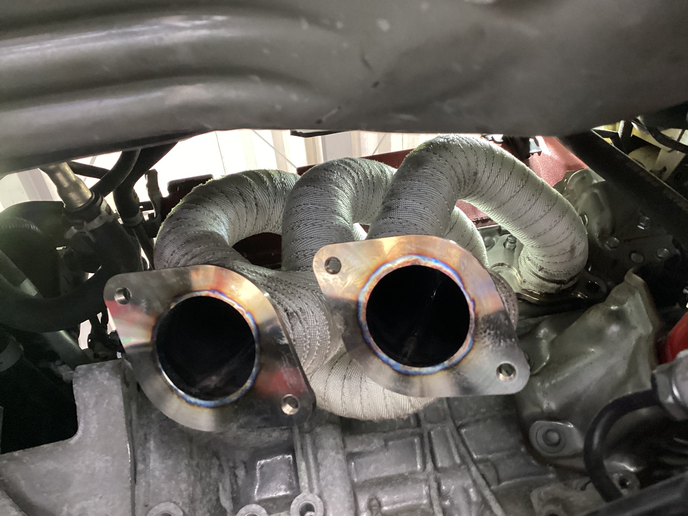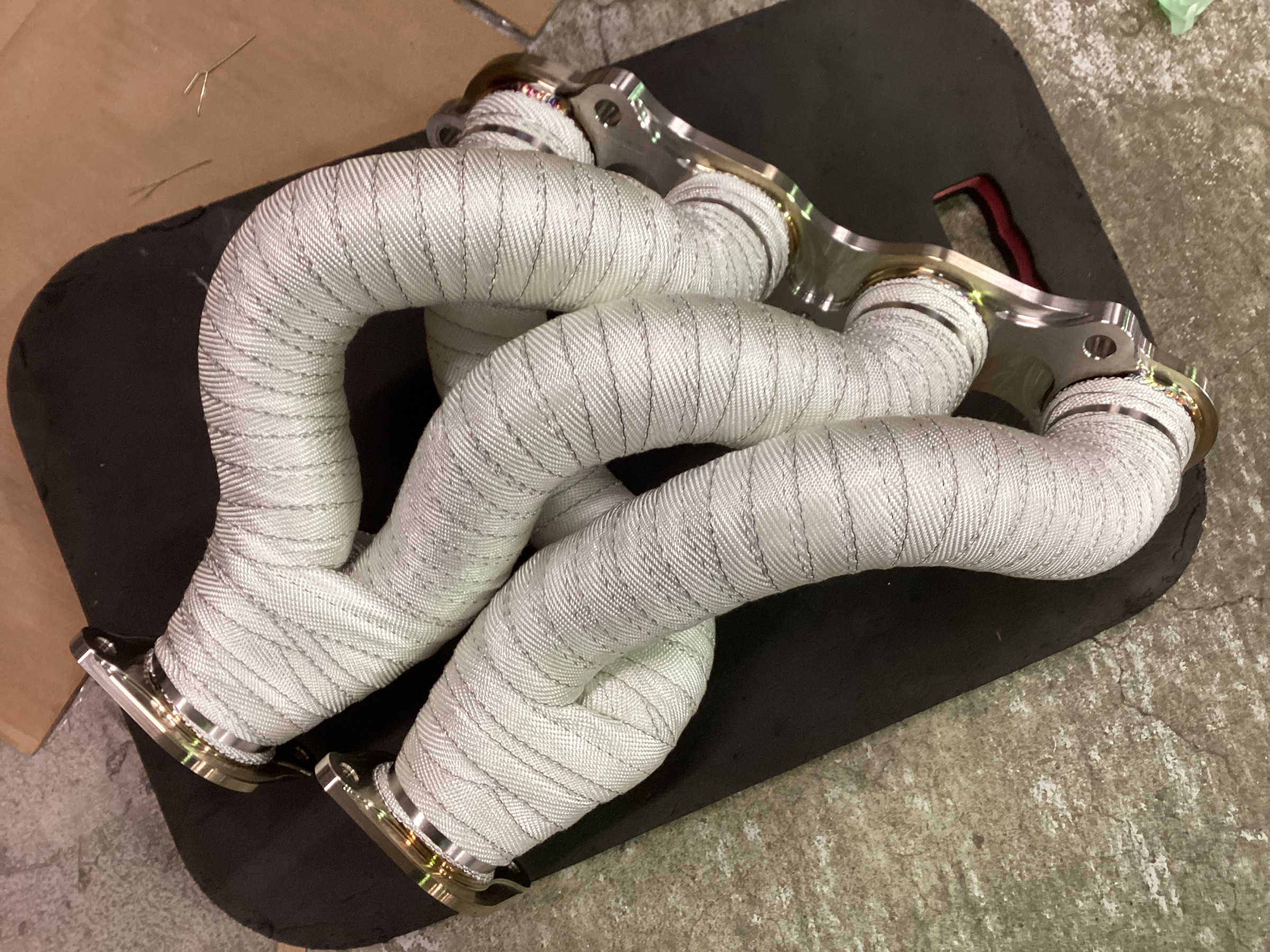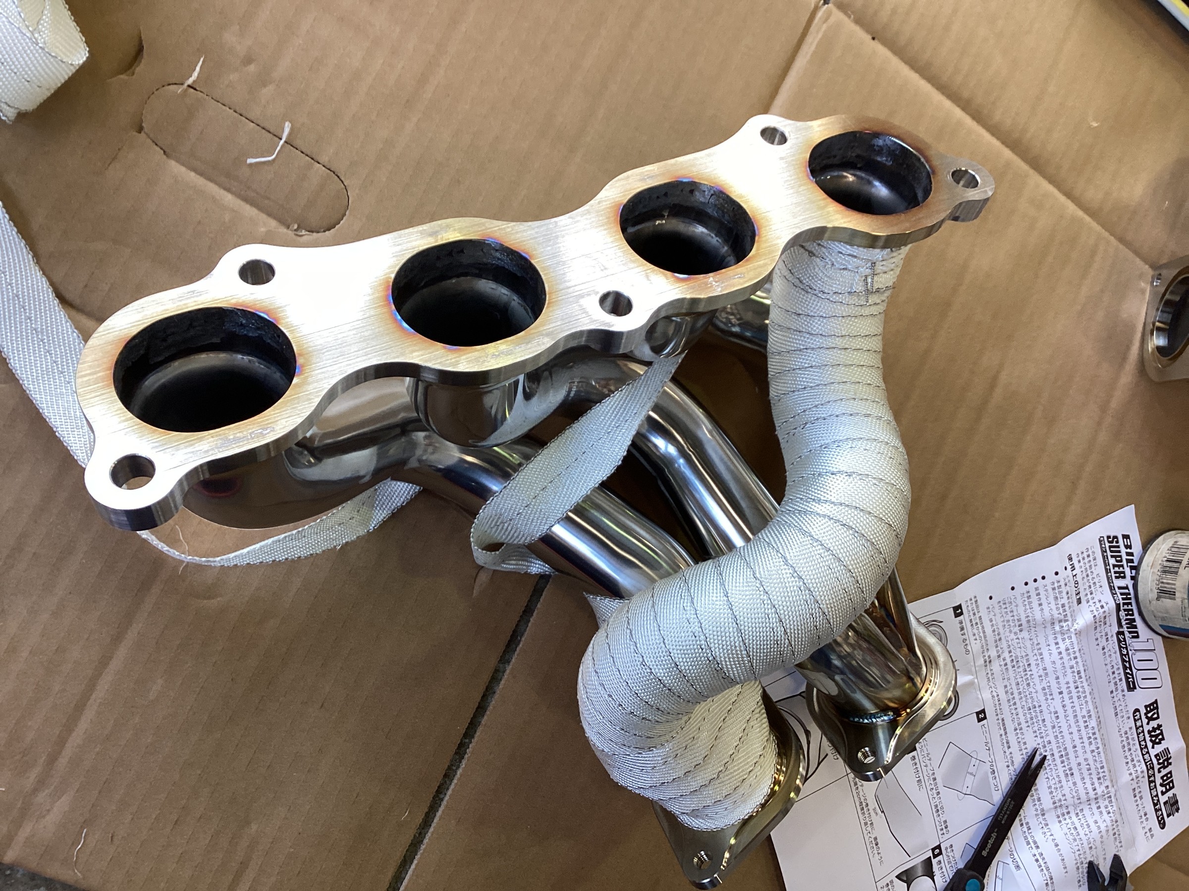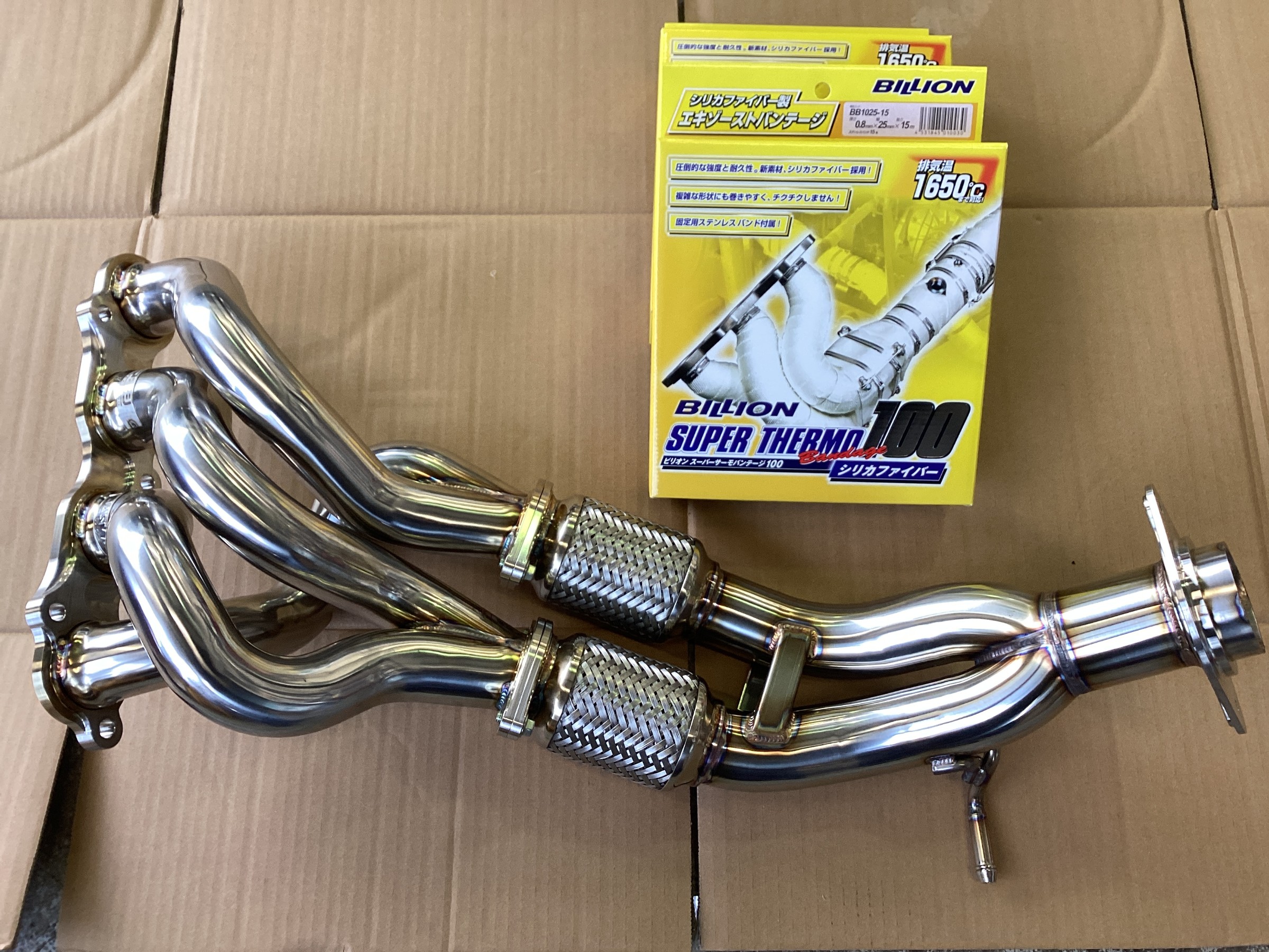 こんなに綺麗なエキマニですがしっかりバンテージを巻いちゃいます!使用したのは強度と耐久性に優れるBILLONスーパーサーモバンテージ100!こちら非常に巻きやすくチクチクしないので作業性もバッチリです!