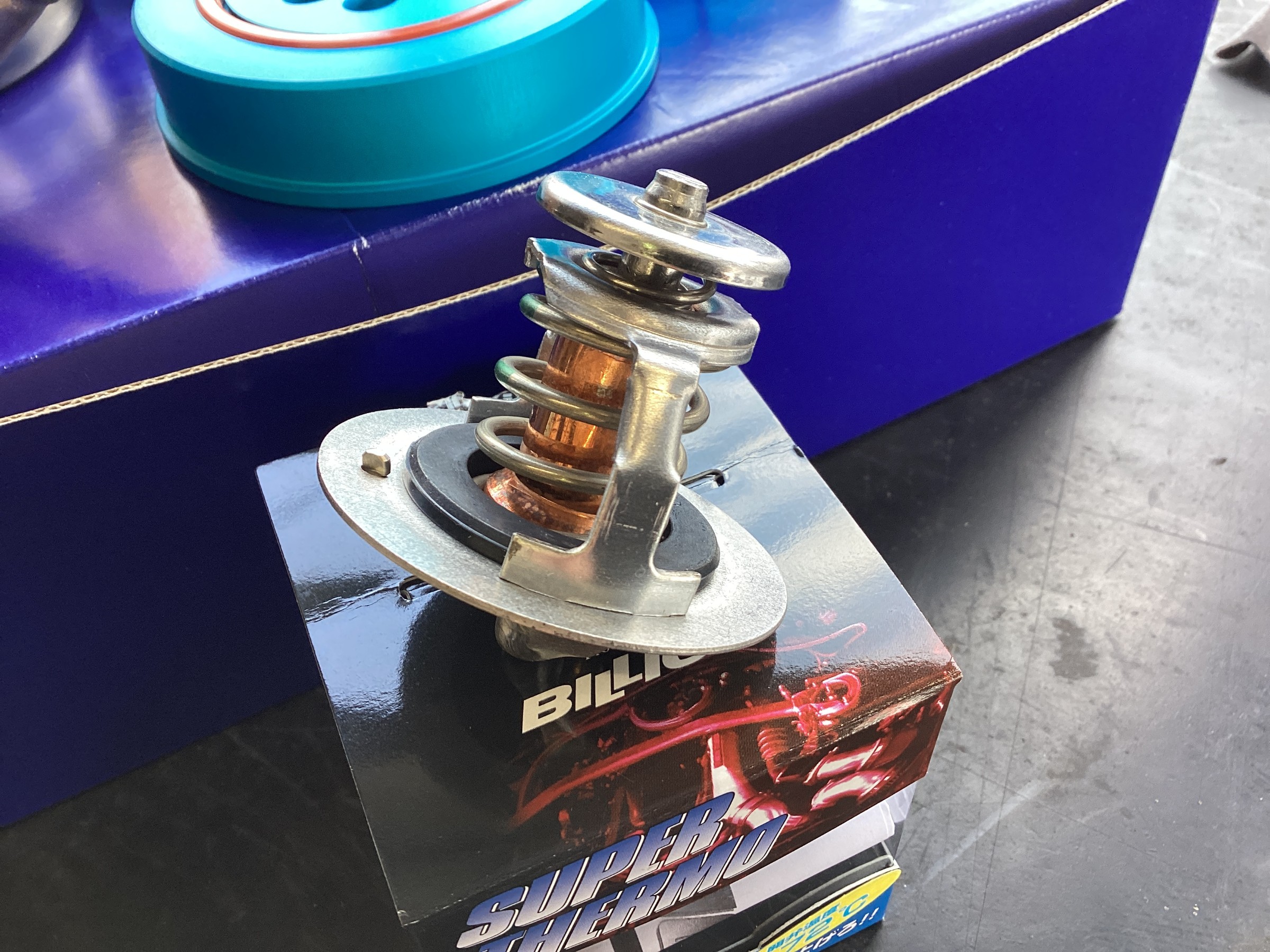 サーモスタットはビリオンスーパーサーモ!純正サーモより早く開弁し水温上昇によるエンジンパワーの低下を抑制!そしてクーラントはKEMITEC PG55RC 高性能レーシングクーラント!