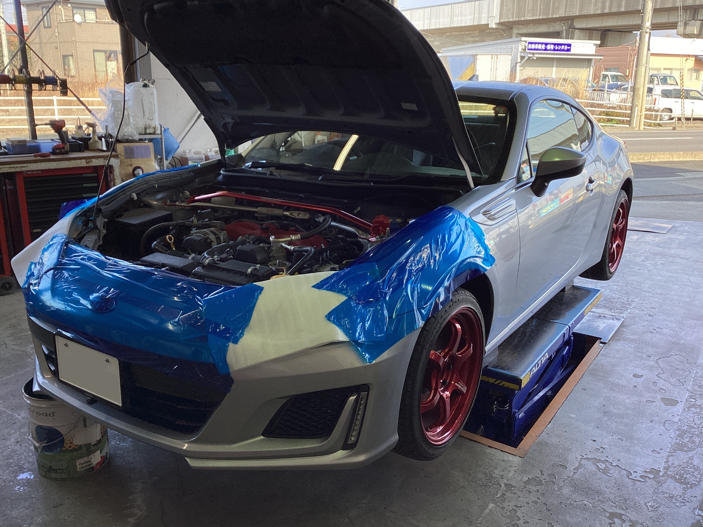 取り付けるのは当店主催SUGO走行会にもご参加頂いてるこちらのBRZ!スポーツ走行で結構油温が上がってしまうBRZ、86はオイルクーラー装着をオススメしております!