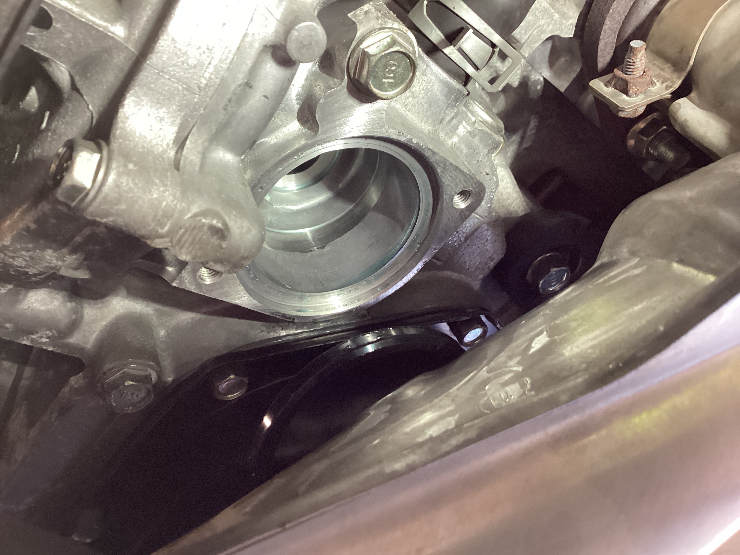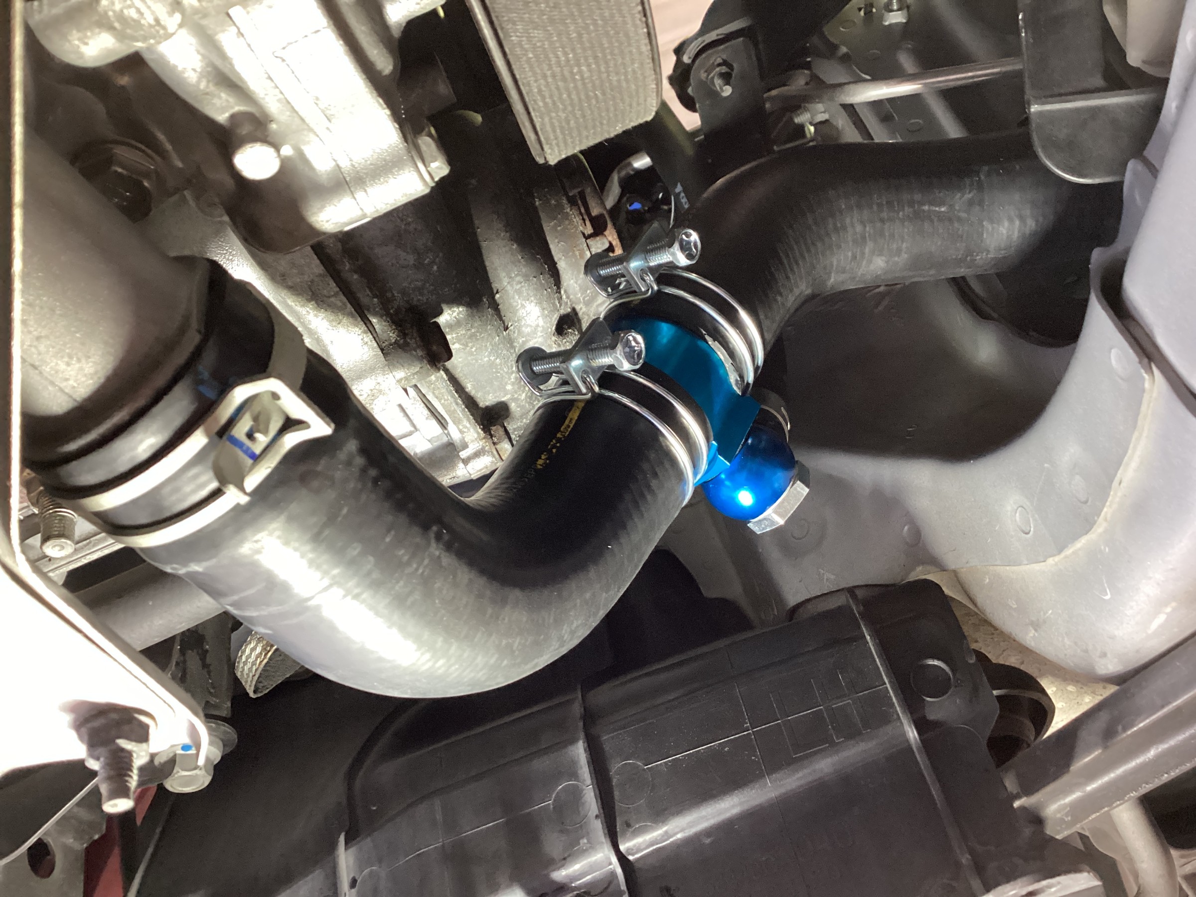 BILLONスーパーサーモを装着し、新しく用意した純正ロアホースを取り付けて・・・