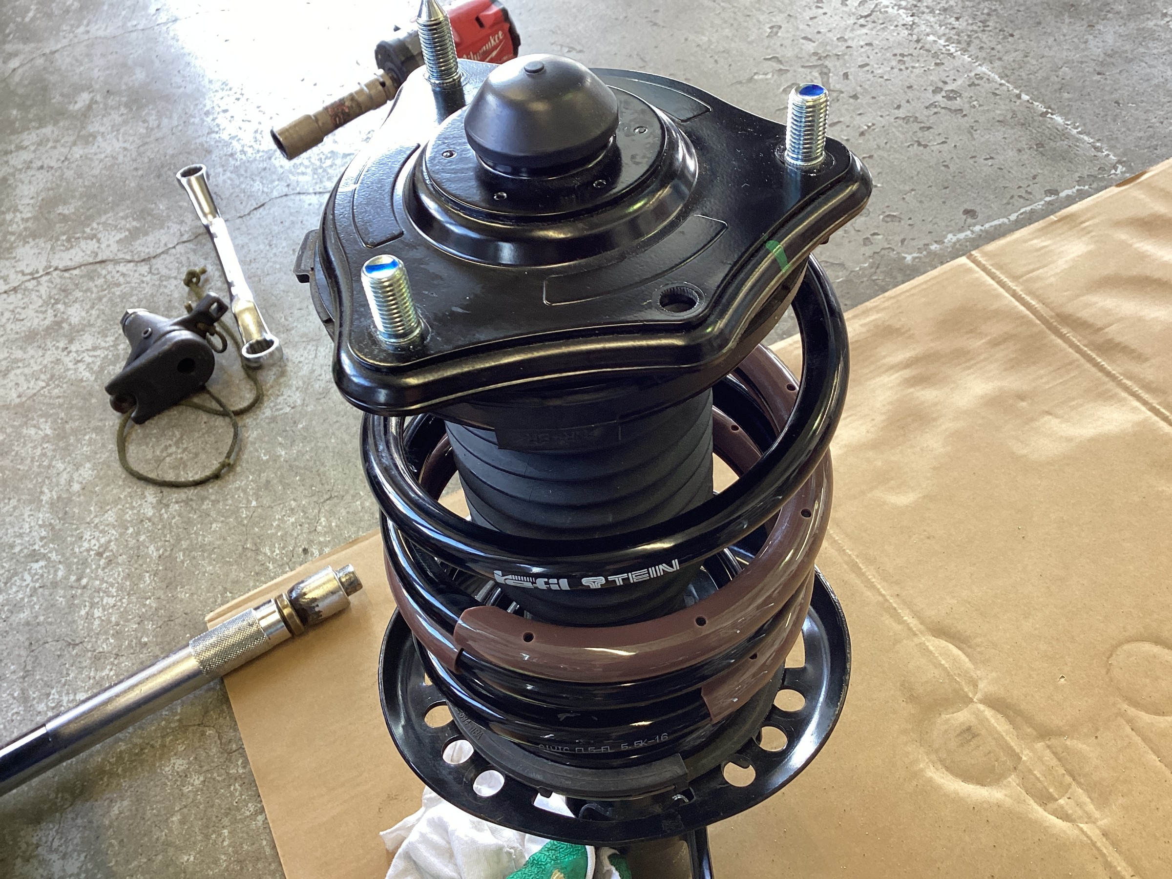 作業に集中しすぎて装着画像がありません!突然1G締め付け作業になりましたが、前後ともローダウンスプリングを装着済みです!