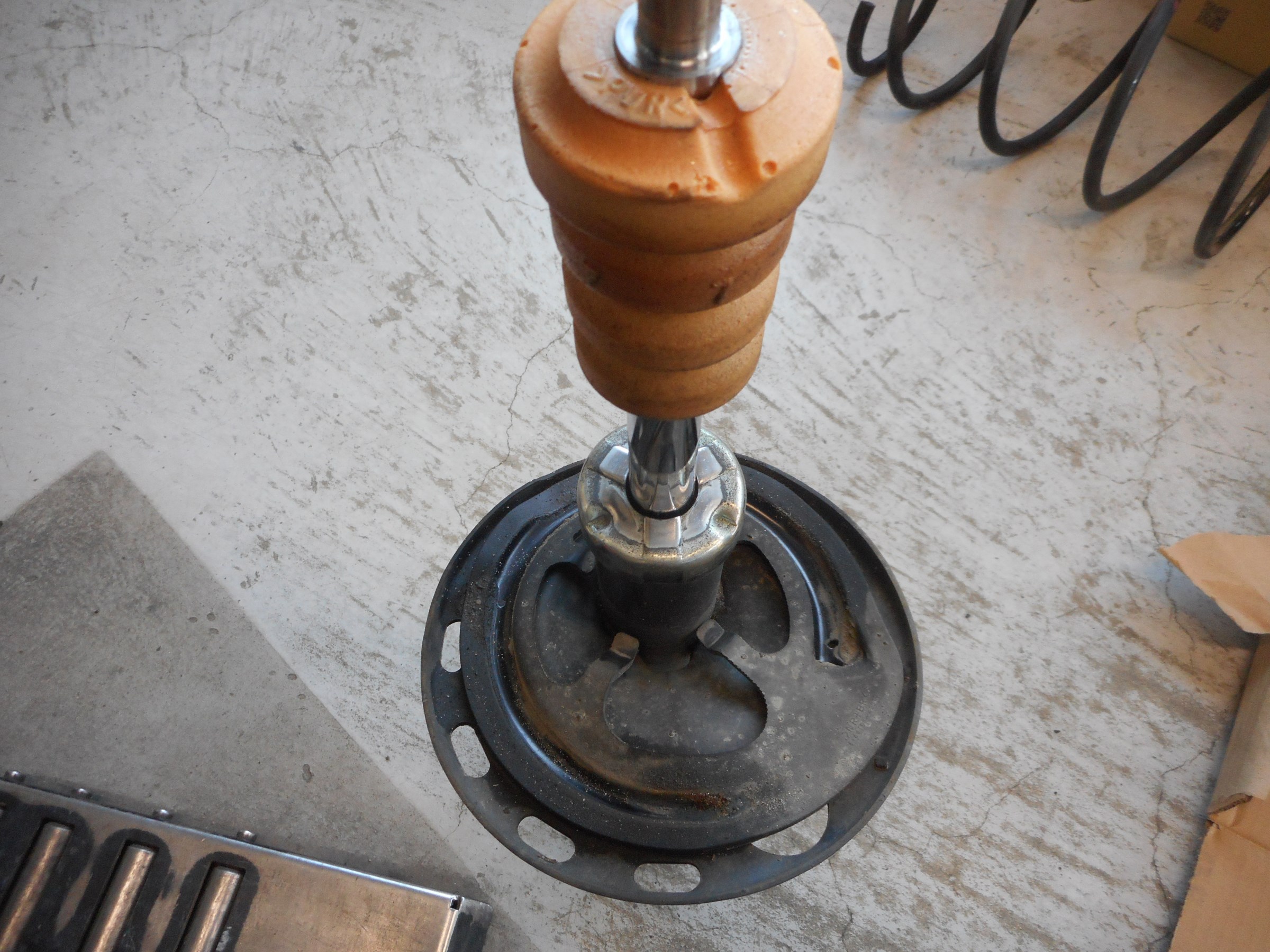 外したノーマルショックですが、約12万キロ走行です。リヤは撮り忘れましたがショックが抜けてました。