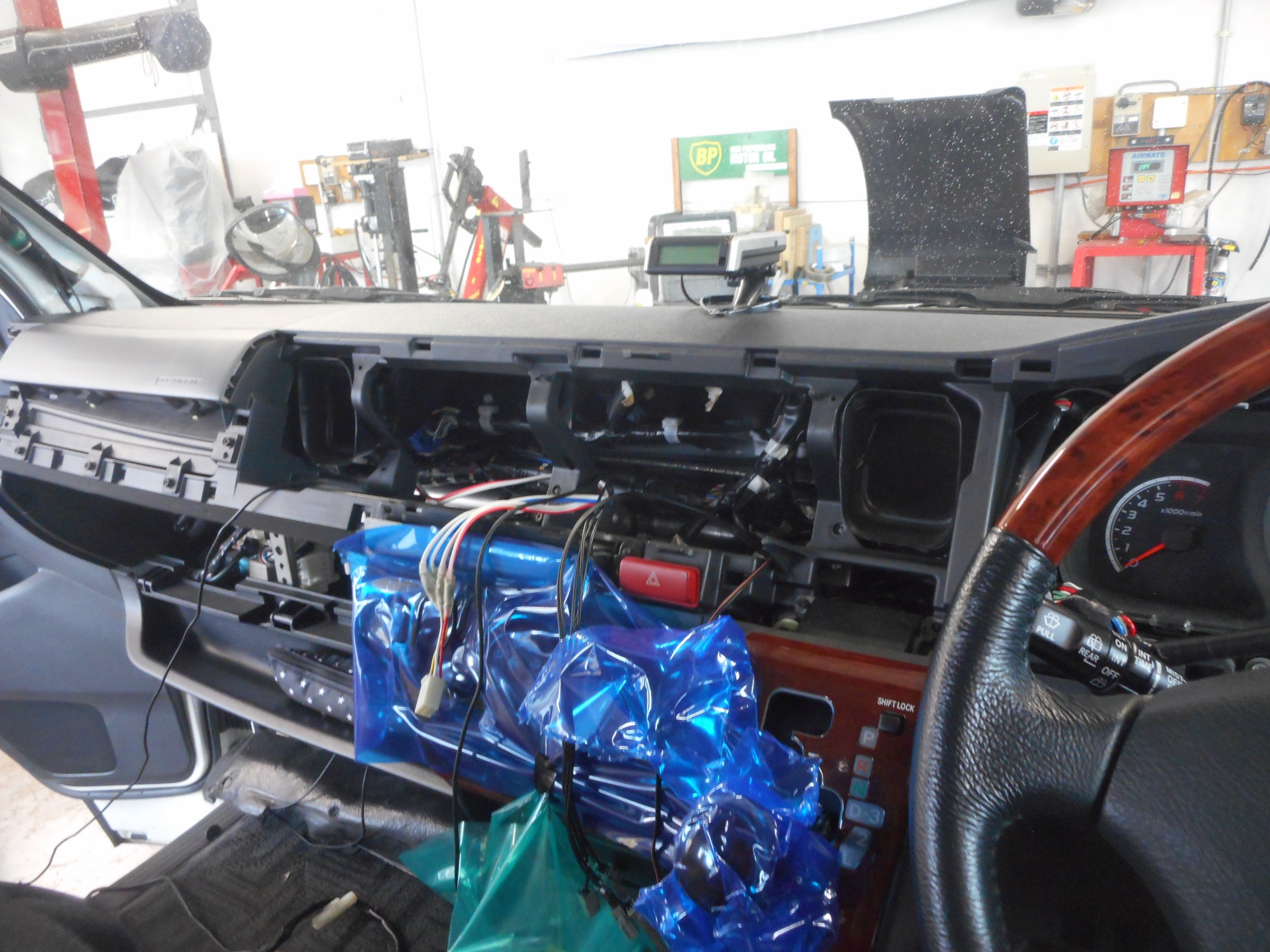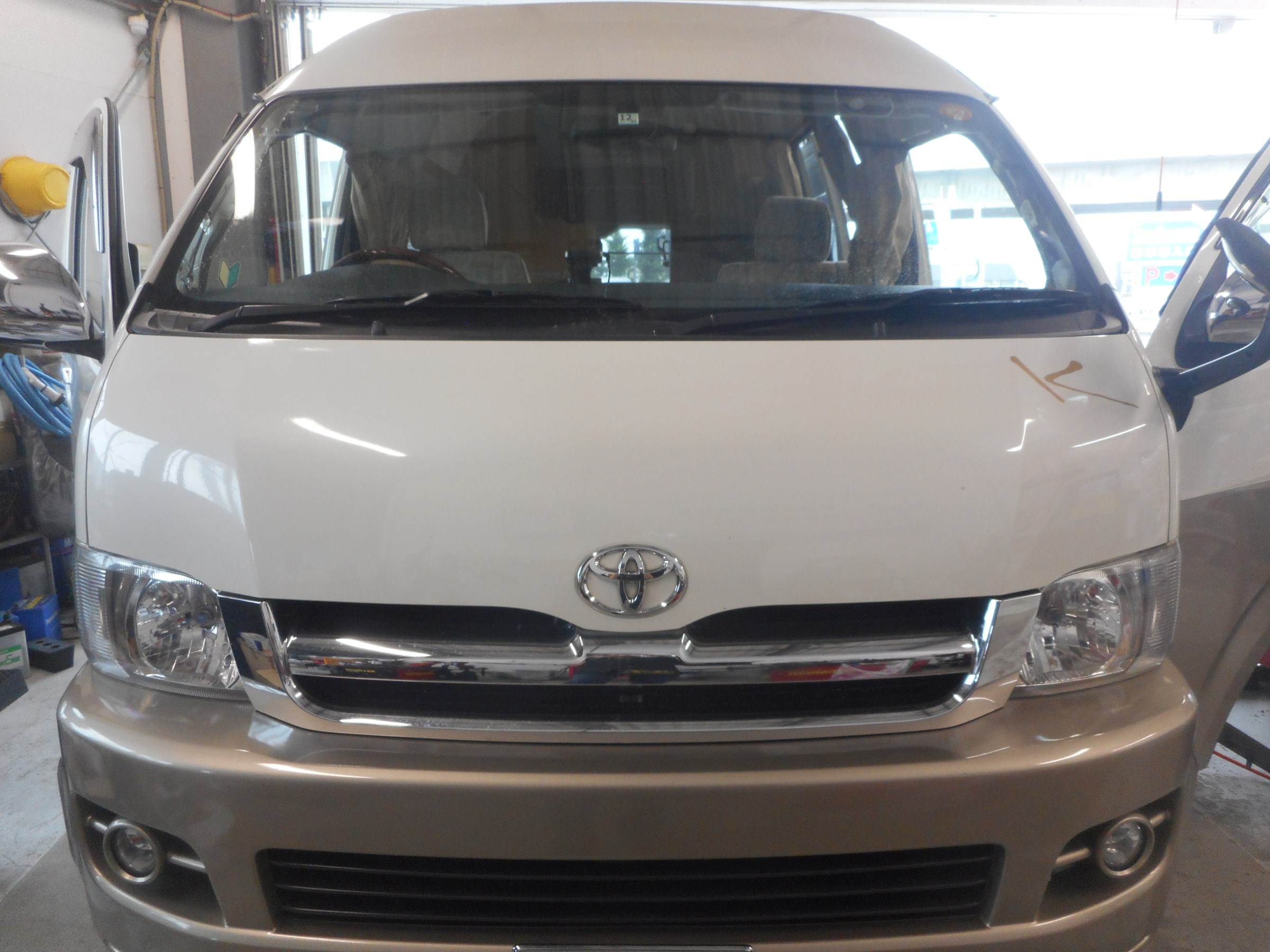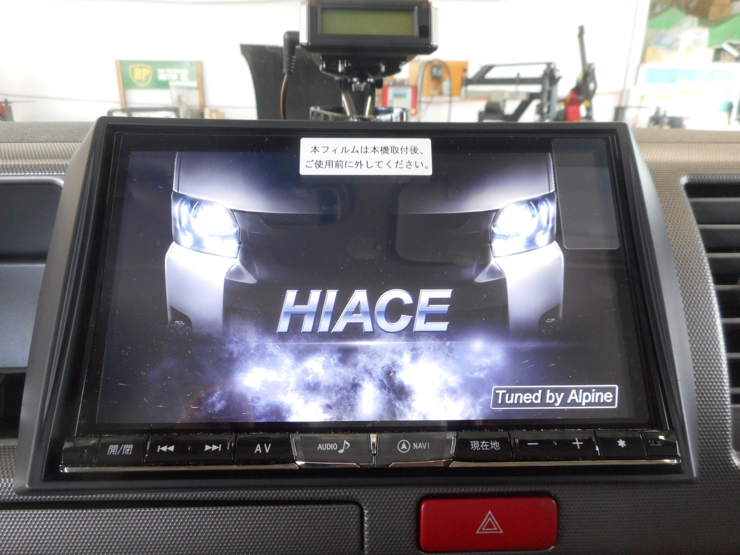キャンピングカー仕様のハイエースですが、純正ナビを外して、アルパインのナビに変更します。