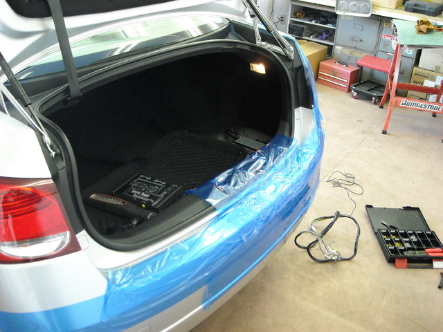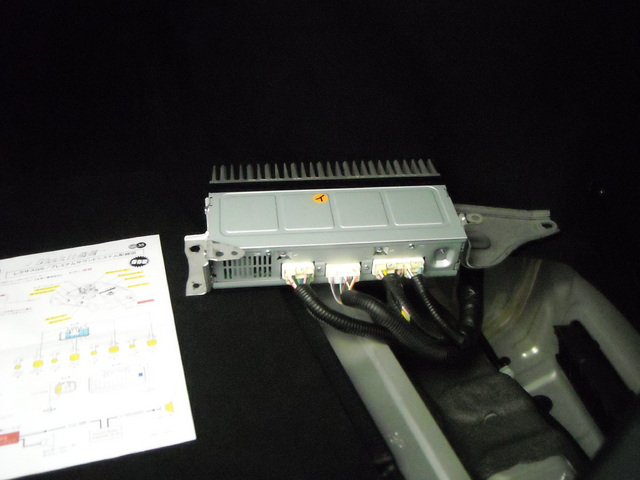 レクサスのアンプはトランクの右下にあり、専用のハーネスがないため「ギボシ端子」による接続になります。