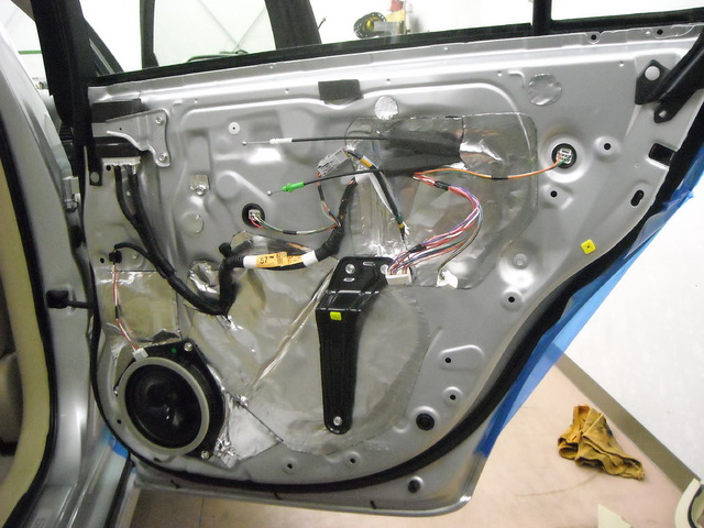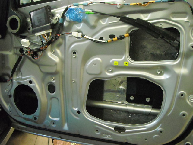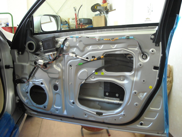 ドア内部が終了したら次はサービスホールを制振シートで塞いでいきます(低音域が良くなります)。
