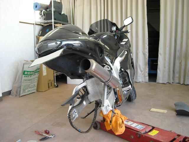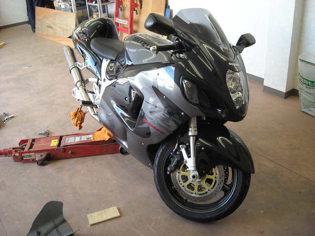 2009年4月23日 ツイート 当店はバイクのタイヤ交換もOKです!今日はスズキ・ハヤブサの前後タイヤ交換。しかしながら、バイク屋さんのように吊り上げるリフトが無いので、慎重にジャッキアップして交換します。いつもお世話になっている整備工場の方のバイクだったので、手伝ってもらいながら終了。X?0キロオーバーの世界をお楽しみ下さい!!? Prev Next