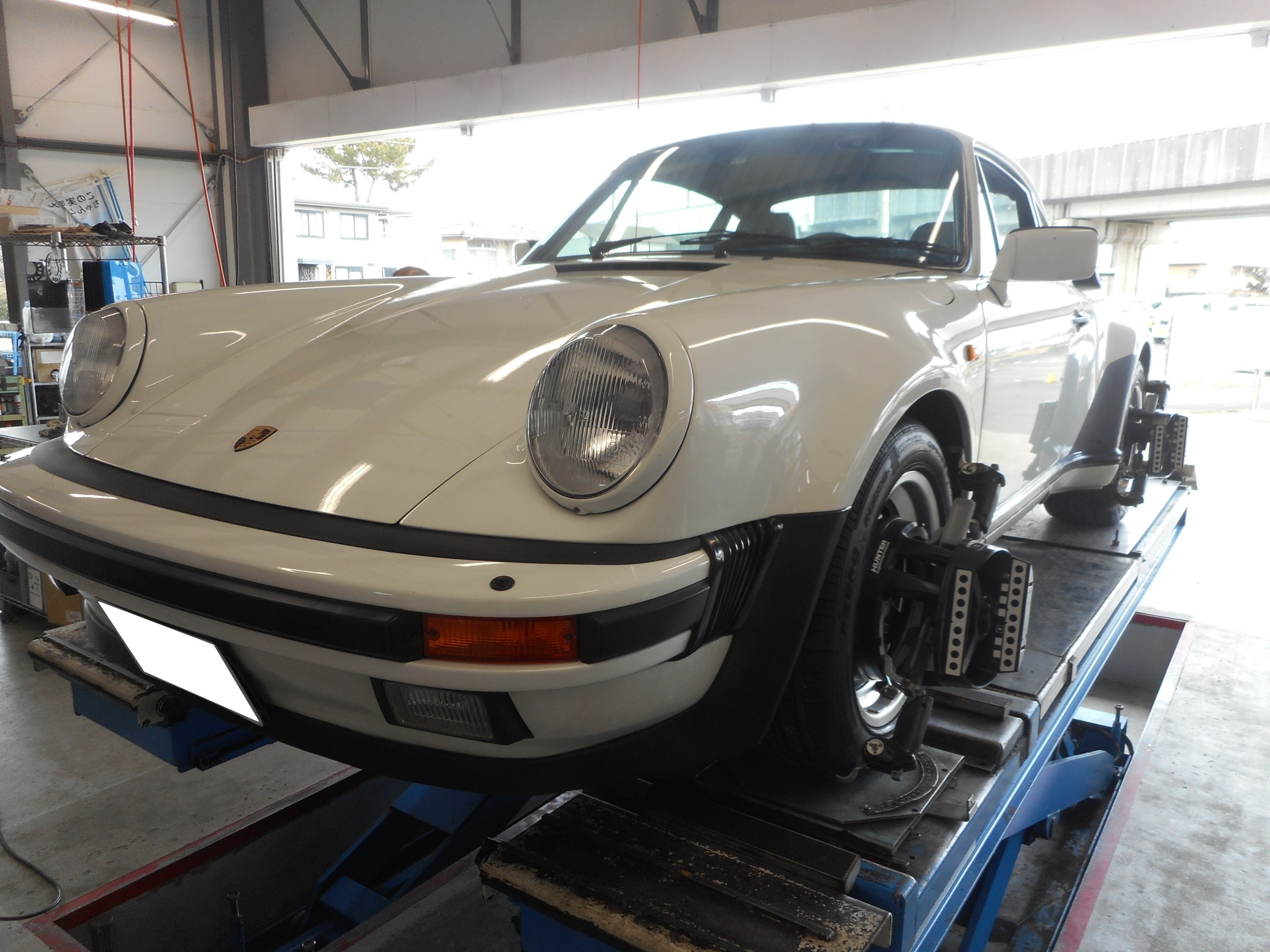 大きいリアウイングが特徴のポルシェ930ターボです!アライメント調整で入庫しました。