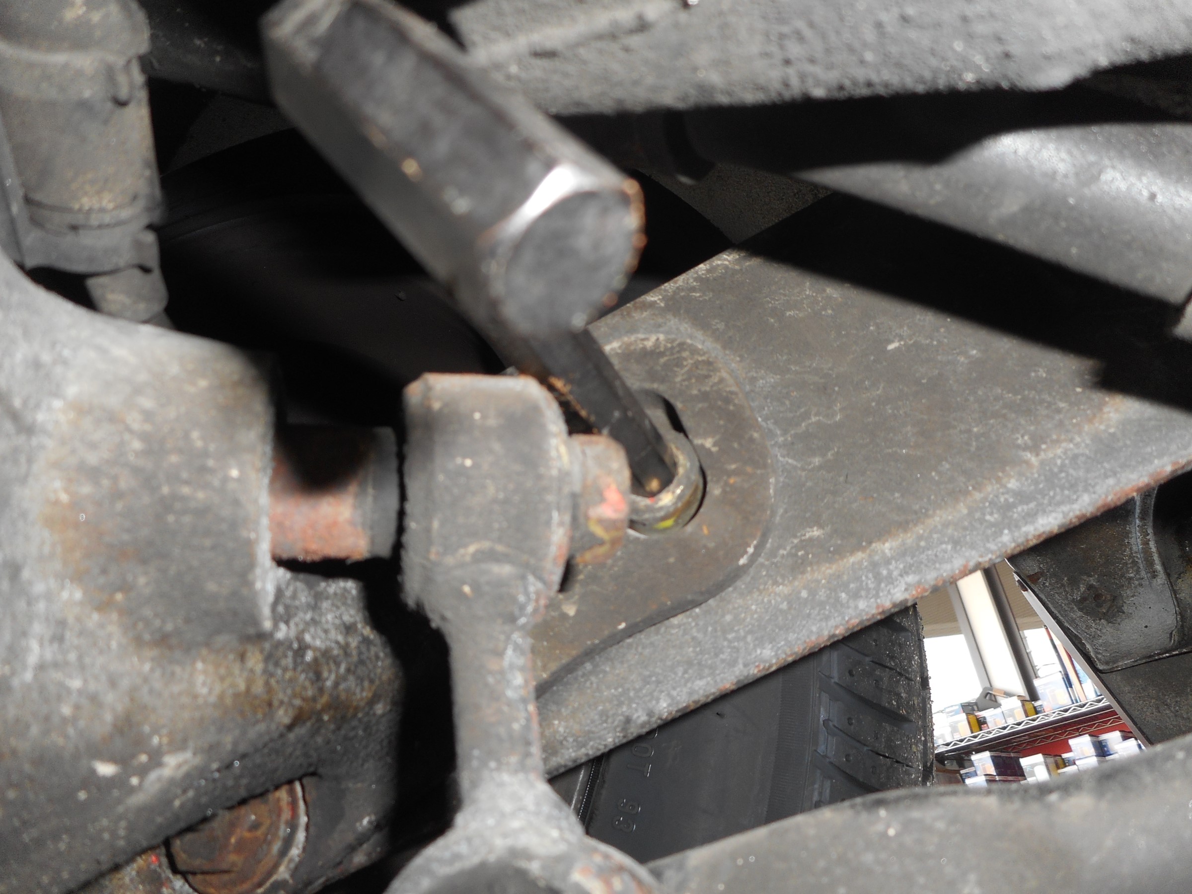 約30年も前の車両になる為、アラメント調整前にトー、キャンバーボルトを一旦外して固着が無いか確認しながら測定を始めます。外したボルトには、錆防止の為ワコーズのスレッドコンパウンド塗っております。