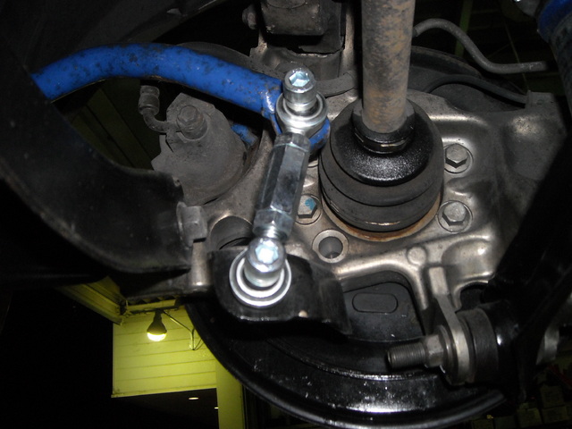③最後は以前車高調をご購入いただいたレガシィB4のお客様、車高の調整とCUSCOのスタビリンクを前後に取付です。