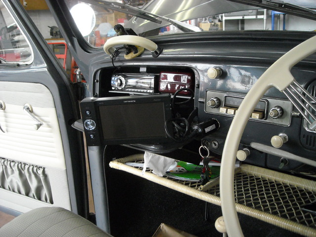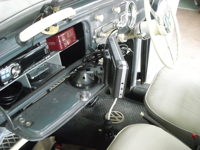 ②続いてVWビートル(Type1)のインパネに穴を開けてシガーライターを装着、カロッツェリアのエアーナビを取付ました。