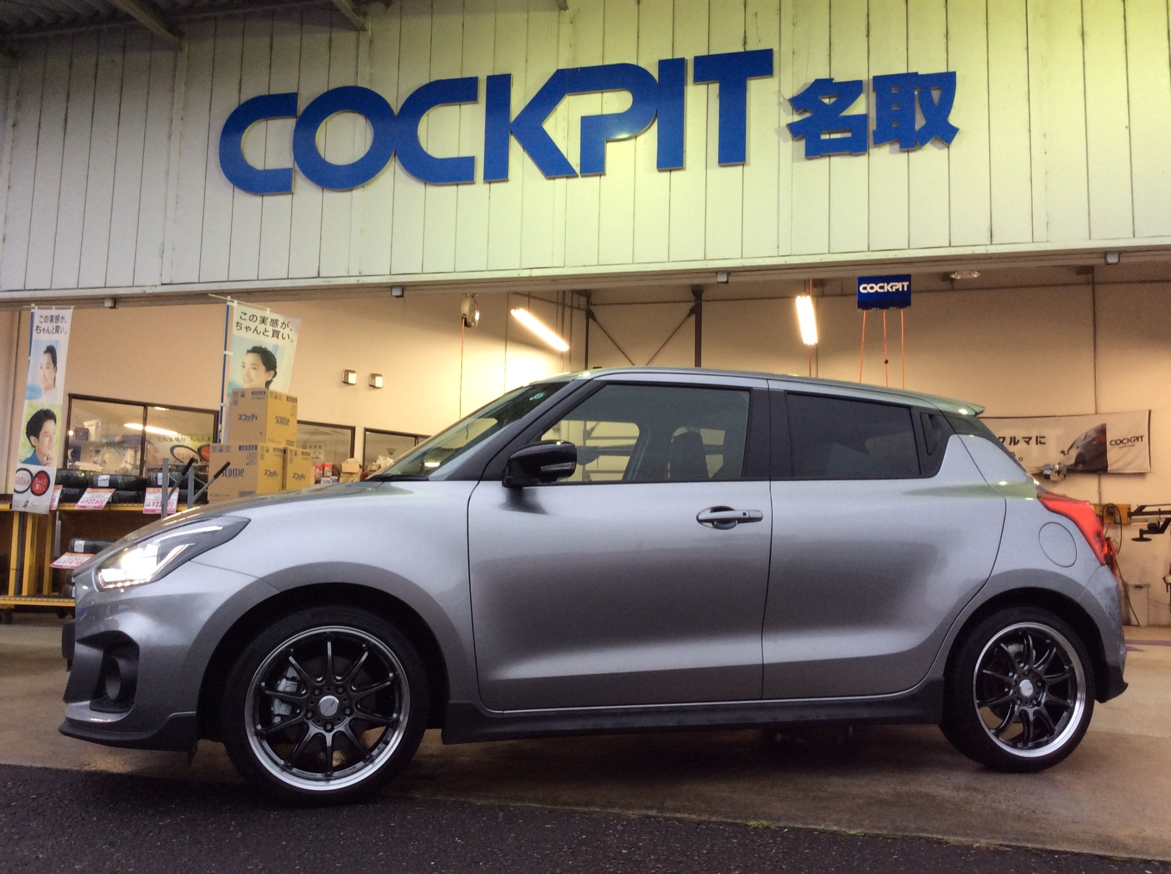 前回、フリップダウンモニターを取り付けましたスイスポですが、今回はホイールを、純正からWORKに交換したいと思います!