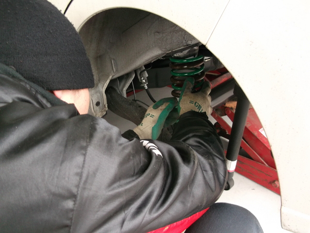 L100S ムーヴにテインSテクスプリングを組込み、アライメント調整しました。