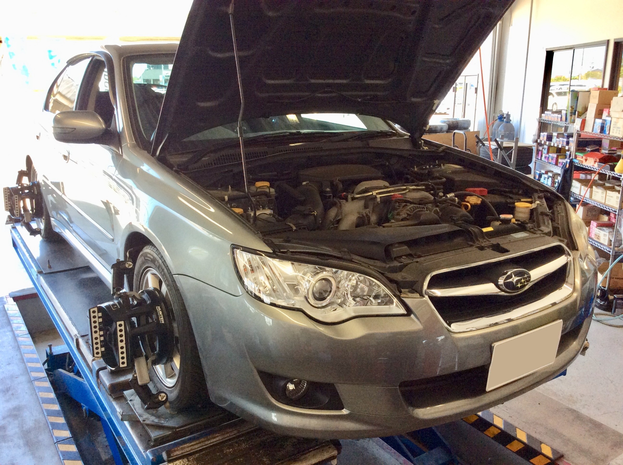 今回は、こちらのレガシィB4にTEINの車高調を