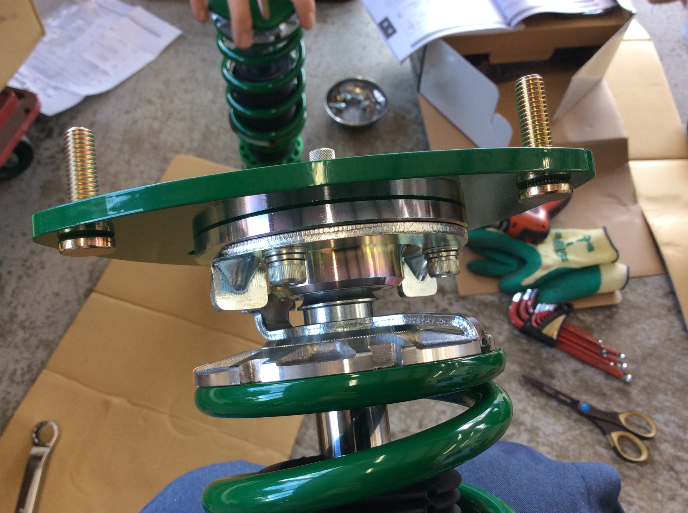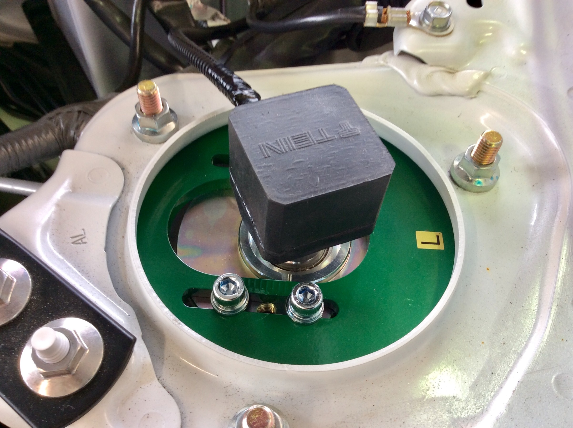 モーターを取り付ける前に、車高調整した時にモーターの配線が絡まらないよう、ストラットKITを取り付けます。