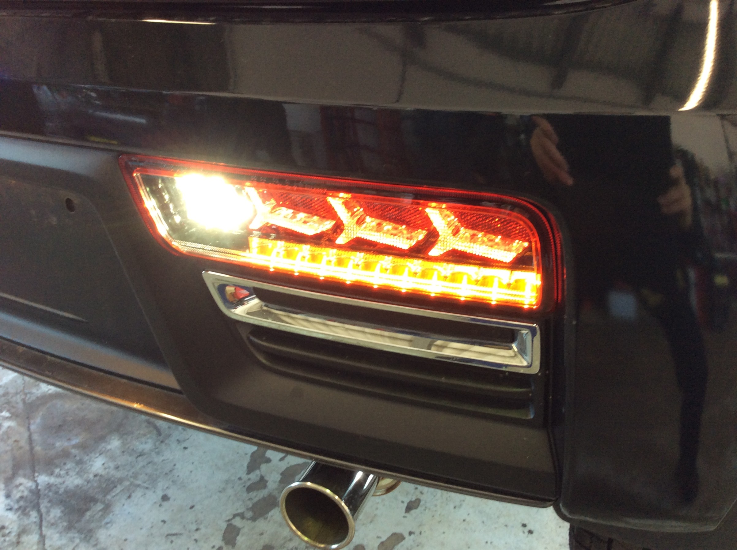 外したバンパーにクリスタルテールランプを取り付けます。