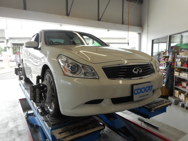 スカイラインが直進で左に流れるとのことで、アライメント調整しました!